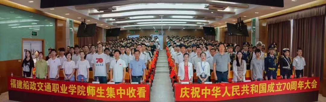 10月1日上午,福建船政交通職業(yè)學(xué)院舉行隆重活動(dòng),慶祝新中國(guó)成立70周年。學(xué)院黨委副書記陳宜大,黨委委員、副院長(zhǎng)陳艷紅及學(xué)院有關(guān)部門領(lǐng)導(dǎo)、在校千余名師生代表在田徑場(chǎng)參加了莊嚴(yán)的升旗儀式。全體師生齊唱《國(guó)歌》,并在國(guó)旗下放聲歌唱《我和我的祖國(guó)》。
