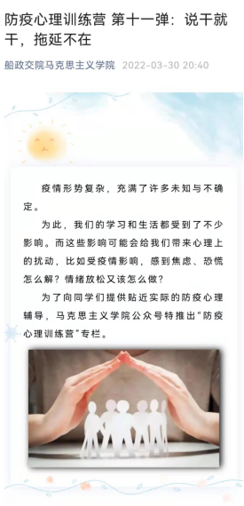 學(xué)院開設(shè)公眾號(hào)抗疫心理專欄
