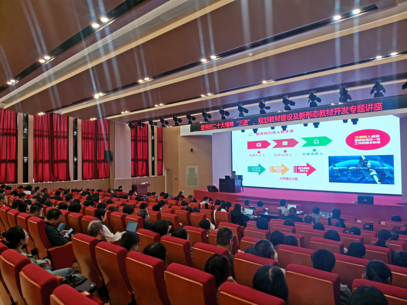 會(huì)上,趙巖副總編以《黨的二十大精神“三進(jìn)”、規(guī)劃教材建設(shè)與新形態(tài)教材開(kāi)發(fā)》為題,結(jié)合豐富的職業(yè)教育理論知識(shí)和出版編輯經(jīng)驗(yàn),從為何進(jìn)、進(jìn)什么、怎么進(jìn)、進(jìn)到什么程度等多個(gè)維度闡釋其對(duì)“加快黨的二十大精神進(jìn)‘三進(jìn)’”的理解與思考。他還基于“十三五”“十四五”國(guó)家規(guī)劃教材建設(shè)情況,從課程思政、職教特征、編寫(xiě)機(jī)制、校企合作、配套資源等五個(gè)方面分析了現(xiàn)有教材存在的問(wèn)題和不足,結(jié)合案例詳細(xì)介紹了新形態(tài)教材的形式,并提出開(kāi)發(fā)建議。本次培訓(xùn)進(jìn)一步指導(dǎo)了我校教師對(duì)規(guī)劃教材和工作手冊(cè)式、活頁(yè)式教材、數(shù)字教材等新形態(tài)教材開(kāi)發(fā)。