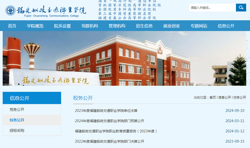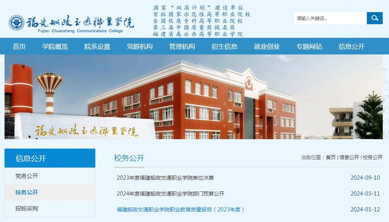 2023-2024學(xué)年,福建船政交通職業(yè)學(xué)院深入貫徹落實(shí)《中華人民共和國(guó)政府信息公開(kāi)條例》《高等學(xué)校信息公開(kāi)辦法》等文件精神,遵照《教育部辦公廳關(guān)于做好2024年高校信息公開(kāi)年度報(bào)告工作的通知》等文件要求,開(kāi)展信息公開(kāi)工作并編制本年度報(bào)告。