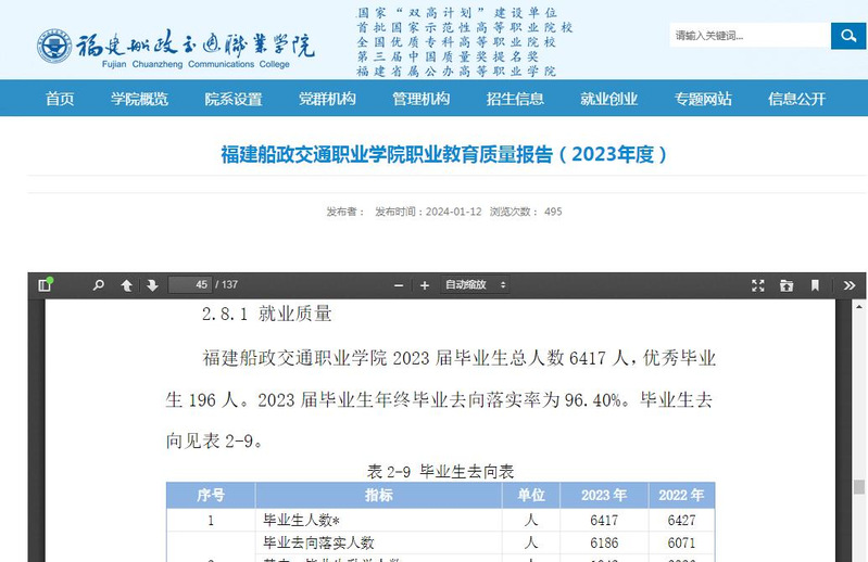 圖6 福建船政交通職業(yè)學(xué)院學(xué)生就業(yè)情況公示