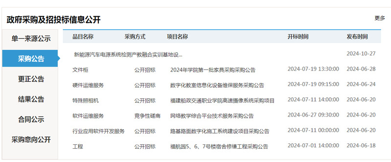 圖4 福建船政交通職業(yè)學(xué)院招標(biāo)采購(gòu)信息公開(kāi)