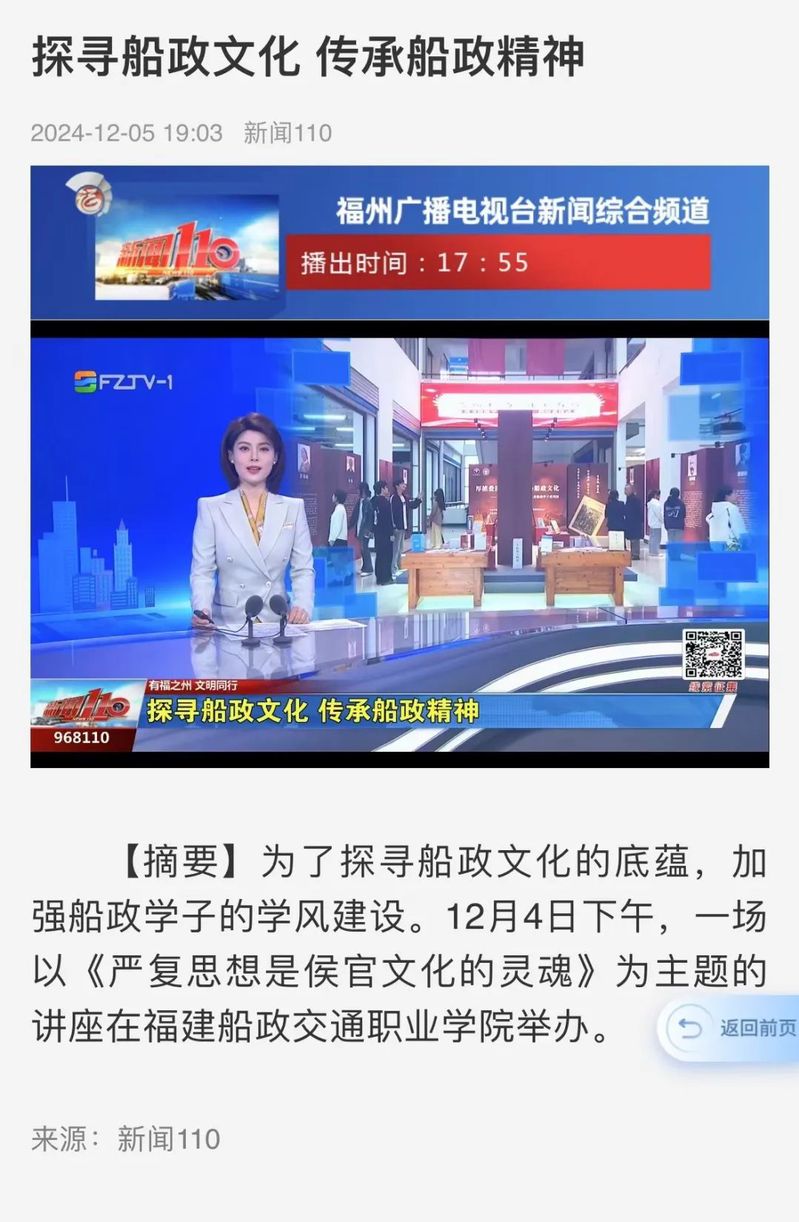 近日, “百年船政尋史跡——‘浩瀚書(shū)海研途有你’圖書(shū)館研學(xué)系列活動(dòng)”在我院舉辦,以“聽(tīng)一場(chǎng)講座”“觀一場(chǎng)展覽”“看一場(chǎng)電影”“品七天閱讀”“篤踐行”等形式開(kāi)展,活動(dòng)持續(xù)近一個(gè)月,吸引眾多學(xué)生圍觀、參與,讓學(xué)生們遨游書(shū)海的同時(shí),體驗(yàn)了一場(chǎng)探尋船政文化的研學(xué)之旅,受到福州廣播電視臺(tái)《新聞110》欄目的關(guān)注與報(bào)道。