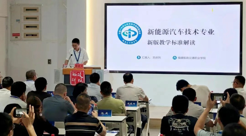 在教學(xué)標(biāo)準(zhǔn)落地研討中,汽車行指委分享《新能源汽車技術(shù)》等三門新版專業(yè)教學(xué)標(biāo)準(zhǔn)。福建船政交通職業(yè)學(xué)院汽車學(xué)院院長(zhǎng)蘇慶列進(jìn)行重點(diǎn)解讀。