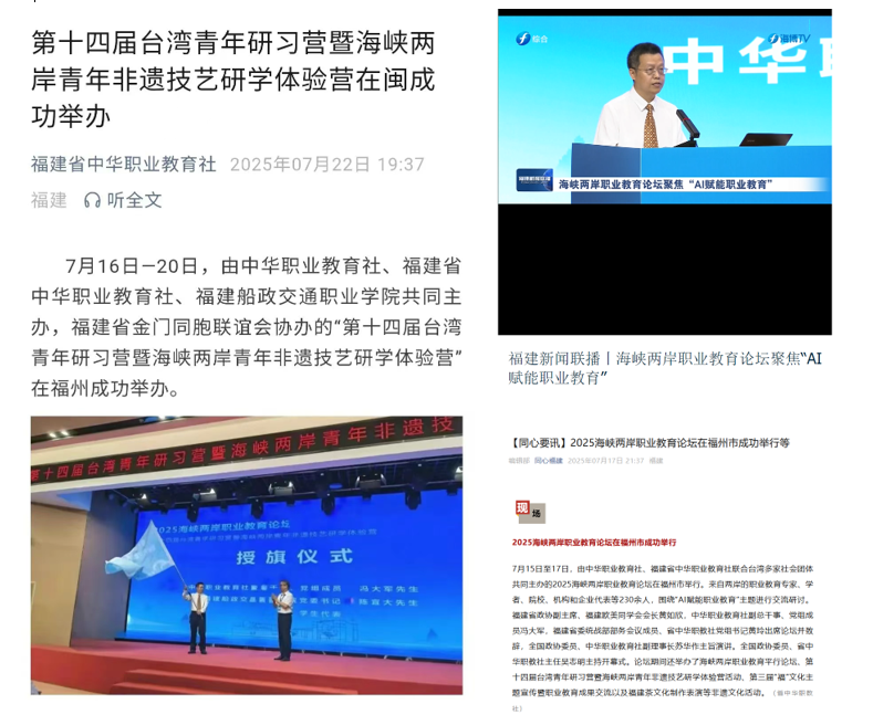 來源:新華社、人民網(wǎng)、中國臺灣網(wǎng)、中國教育報、經(jīng)濟日報、中國新聞網(wǎng)、中華職業(yè)教育社、福建省中華職業(yè)教育社、福建電視臺、同心福建等