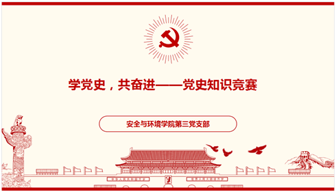 為慶祝建黨100周年,鼓勵(lì)支部黨員教師做到學(xué)史明理、學(xué)史增信、學(xué)史崇德、學(xué)史力行,學(xué)黨史、悟思想、辦實(shí)事、開(kāi)新局,以昂揚(yáng)姿態(tài)奮力開(kāi)啟全面建設(shè)社會(huì)主義現(xiàn)代化國(guó)家新征程,3月22日,安全與環(huán)境學(xué)院第三黨支部開(kāi)展了“學(xué)黨史、共奮進(jìn)”黨史知識(shí)競(jìng)賽。