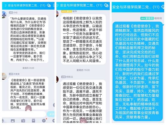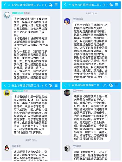 為深入開展黨史學(xué)習(xí)教育,進(jìn)一步傳承紅色基因、賡續(xù)紅色血脈,在安全與環(huán)境學(xué)院黨總支的號(hào)召下,安全與環(huán)境學(xué)院各支部組織支部黨員教師觀看了革命歷史題材電視劇《絕密使命》。2021年4月18日,近代革命歷史劇《絕命使命》在央視一套黃金時(shí)段播出,安全與環(huán)境學(xué)院各支部組織全體黨員同志在線觀看該劇。作為慶祝中國(guó)共產(chǎn)黨成立100周年的優(yōu)秀電視劇,《絕密使命》講述中央地下交通線突破敵人封鎖,成功向中央蘇區(qū)輸送物資、傳送情報(bào)、護(hù)送干部的感人故事。紅色血脈的交通員們忠于職守、前赴后繼、勇于獻(xiàn)身的動(dòng)人事跡,彰顯了這條“摧不垮打不爛的地下航線”熠熠生輝的忠誠(chéng)精神,堅(jiān)定信仰的交通員們舍家人、舍生命,彰顯了中華各族人民不畏犧牲,永遠(yuǎn)跟黨走的偉大精神。
