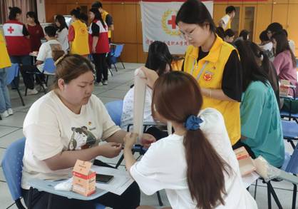 為貫徹落實習近平總書記“人民至上、生命至上”理念,大力營造良好輿論環(huán)境,動員更多社會力量參與和支持紅十字事業(yè),提高全校師生社會責任感和使命感,營造健康良好的校園生活環(huán)境,6月5日—6日在科技樓安全救護實訓室開展心肺復蘇(CPR)、繃帶包扎、三角巾包扎、骨折固定、傷員轉運等急救知識培訓。