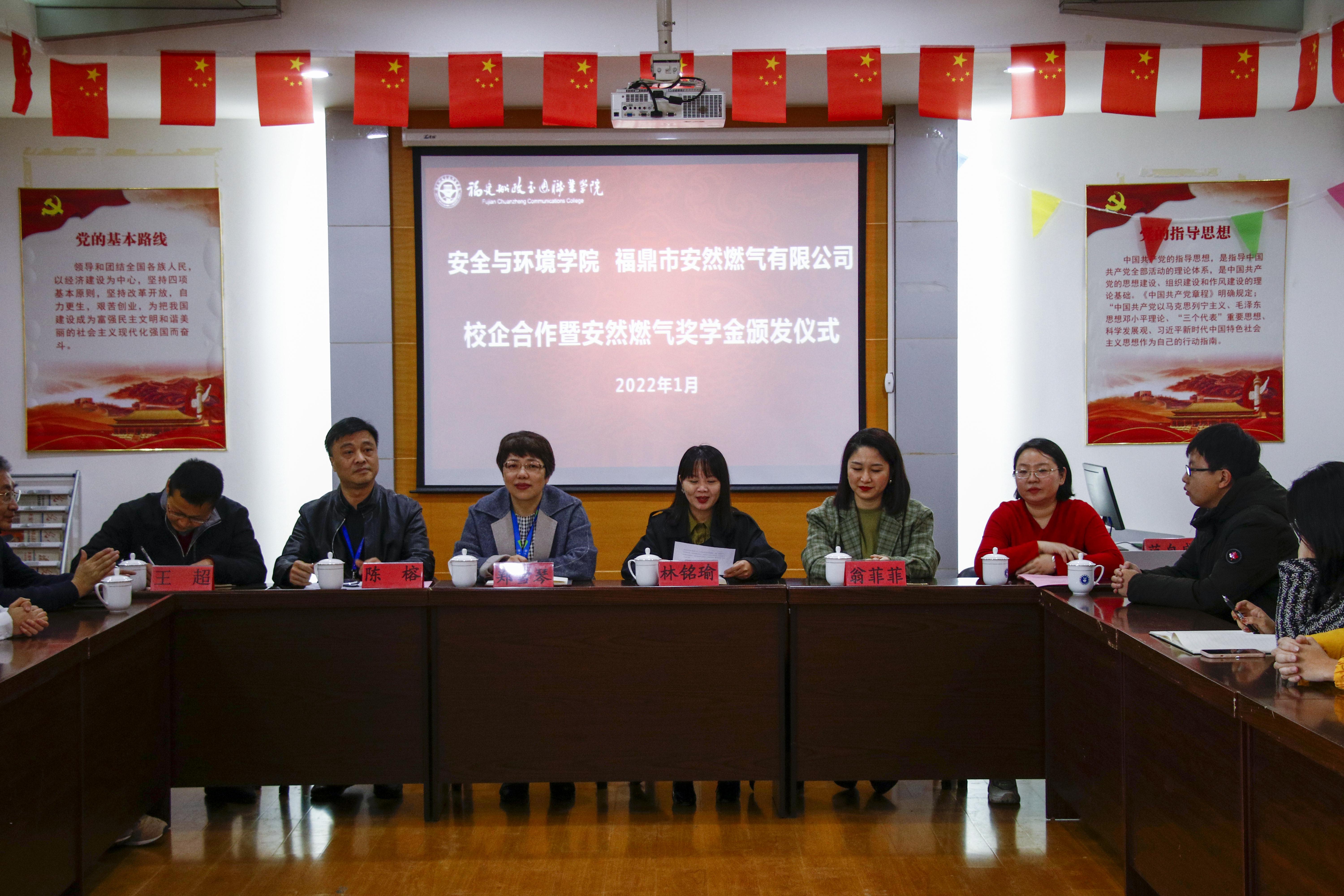 2022年1月5日上午,福鼎市安然燃?xì)庥邢薰敬砀拔以号e行安全與環(huán)境學(xué)院與福鼎市安然燃?xì)庥邢薰景踩蝗細(xì)猹?jiǎng)學(xué)金頒發(fā)儀式。
