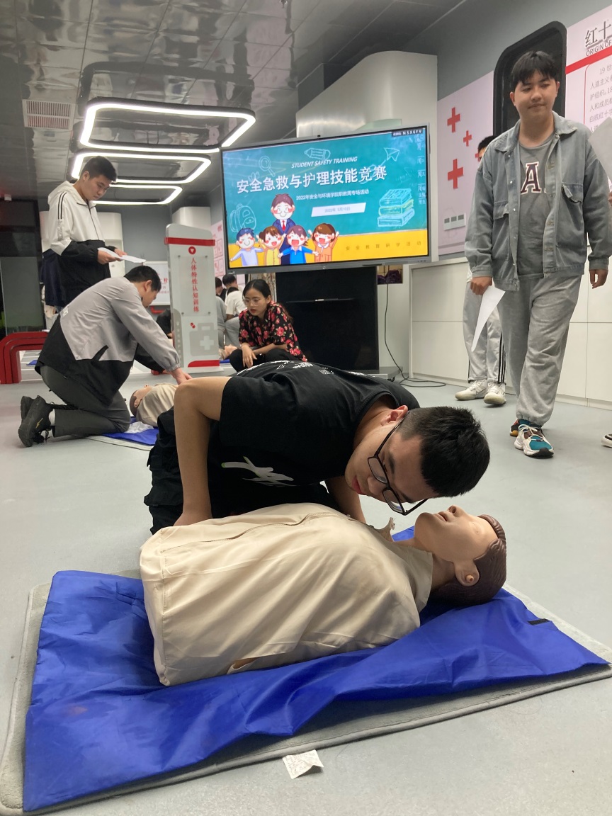 安全急救與護理競賽活動是結(jié)合專業(yè)課程開發(fā)的課-證-賽融通的技能競賽,共有89位選手分批次參加了本次活動??梢栽诎踩本扰c護理課程系統(tǒng)知識技能學習的基礎(chǔ)上,用競賽的形式檢驗學習效果,既能培養(yǎng)職業(yè)技能上精益求精的工匠精神,也能激發(fā)大家學習的興趣。競賽現(xiàn)場通過心肺復蘇技能、三角巾包扎技能的對戰(zhàn)比武,使同學們對應(yīng)急救護知識及技能有了更全面的了解與掌握,也提高了大家應(yīng)對突發(fā)事件的現(xiàn)場救護能力。