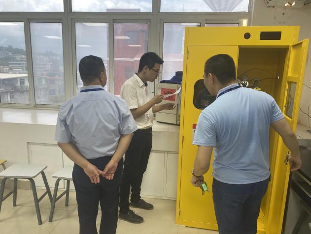 陳明仙院長重點檢查了危化品存放、氣瓶的保管使用,以及水、電、氣和儀器設(shè)備的安全使用等,并要求實訓(xùn)中心要做好暑假期間的安全工作,對于安全隱患要及時發(fā)現(xiàn),及時反饋,及時整改。院長著重強調(diào),要高度重視實驗(訓(xùn))室安全工作;要進(jìn)一步完善管理制度,確保暑期實驗(訓(xùn))室安全;要落實安全責(zé)任制度,做好安全保障。