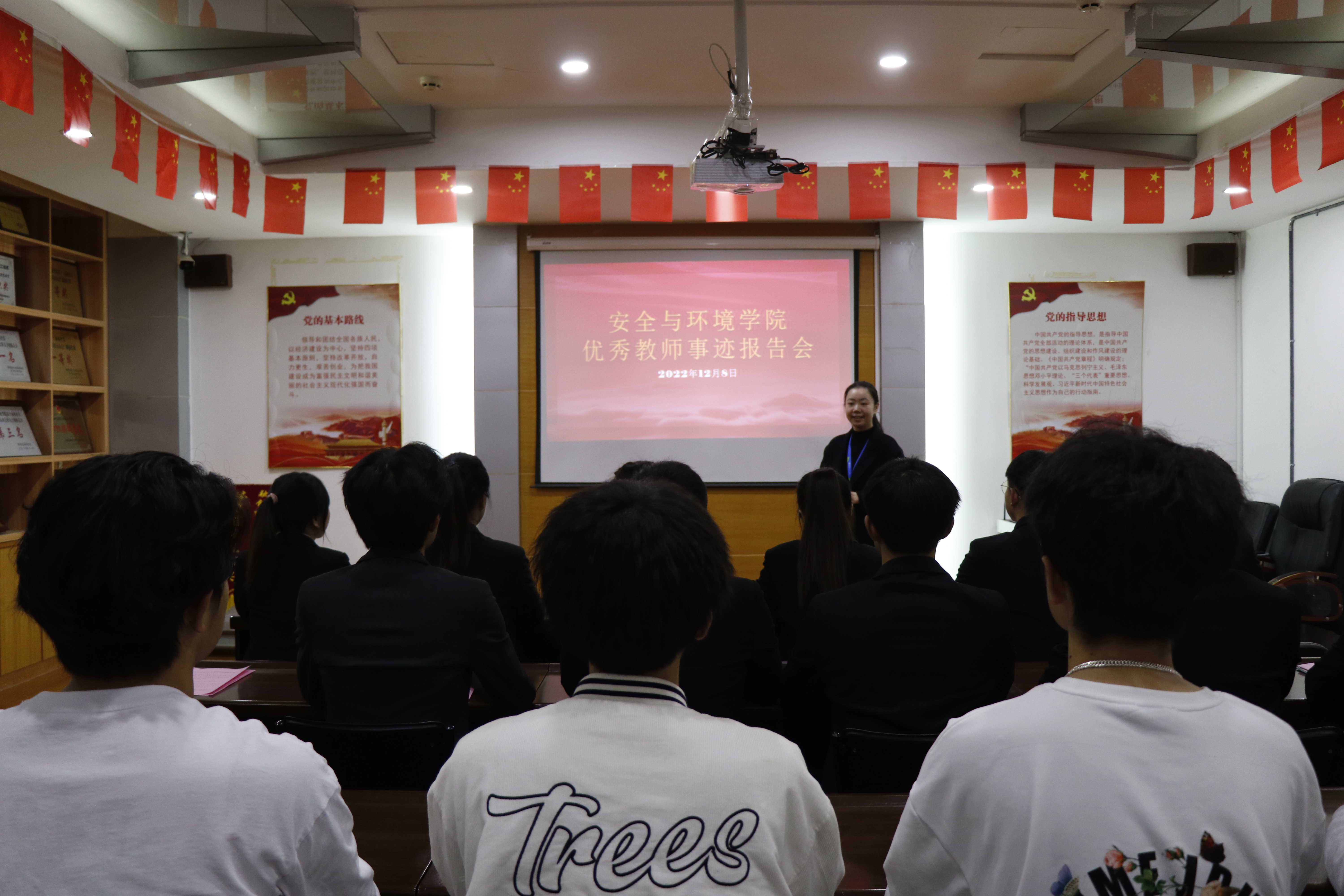 安全與環(huán)境學(xué)院第一黨支部于12月8日晚在創(chuàng)新樓909開展了“爭當(dāng)表率、爭做示范、走在前列”優(yōu)秀教師事跡報告會。邀請在校園疫情防控工作中發(fā)揮重要作用的陳婧老師開展事跡報告,學(xué)院領(lǐng)導(dǎo)和老師以及學(xué)生干部參加了此次報告會,陳婧老師從三個方面做了事跡分享。