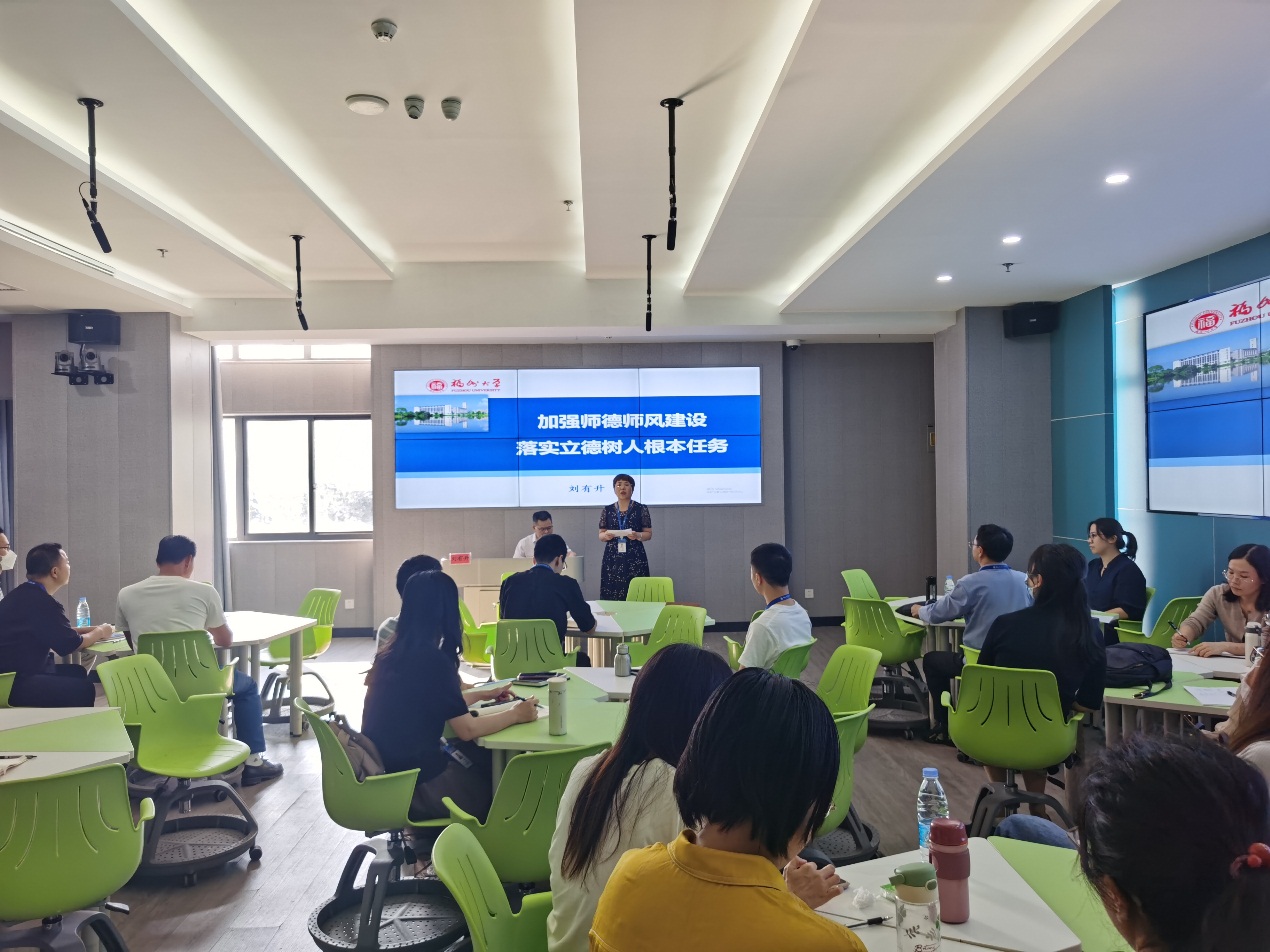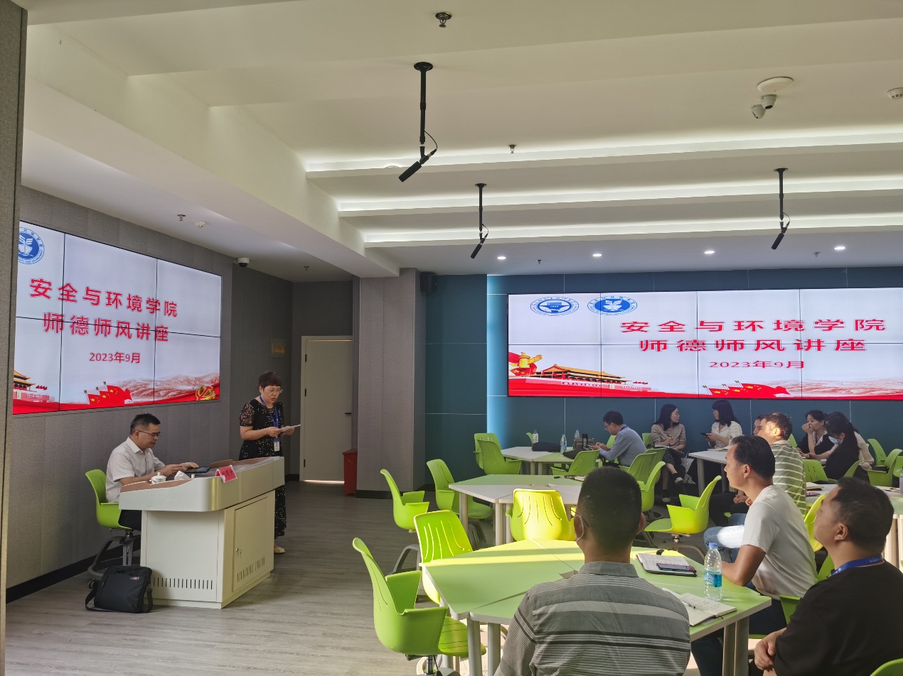 為深入學(xué)習(xí)貫徹習(xí)近平新時(shí)代中國(guó)特色社會(huì)主義思想和黨的二十大精神,進(jìn)一步弘揚(yáng)高尚師德風(fēng)范,涵養(yǎng)潛心立德樹人的優(yōu)良師風(fēng),2023年9月27日,安全與環(huán)境學(xué)院全體教職工在藝新樓二樓公共產(chǎn)教融合基地宣教室舉辦師德師風(fēng)專題講座,邀請(qǐng)福州大學(xué)馬克思主義學(xué)院副院長(zhǎng)劉有升教授來(lái)校授課。此次講座由安全與環(huán)境學(xué)院黨總支書記鄭雪琴主持。
