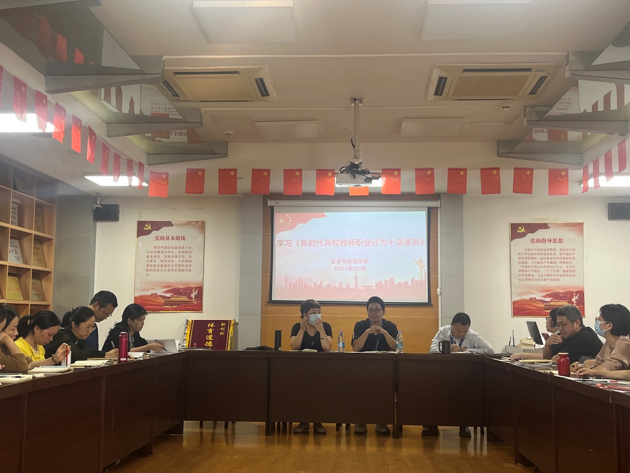 2023年11月1日,安全與環(huán)境學院黨總支開展學習《新時代高校教師職業(yè)行為十項準則》主題教育分享會。會議由安全與環(huán)境學院黨總支書記鄭雪琴主持,全院教師黨員參加會議。結(jié)合主題教育,鄭雪琴書記帶領學習《新時代高校教師職業(yè)行為十項準則》。《新時代高校教師職業(yè)行為十項準則》是中共中央辦公廳、國務院辦公廳近期發(fā)布的一份文件,旨在規(guī)范高校教師的職業(yè)行為,提高教師的職業(yè)素養(yǎng)和教育教學水平。