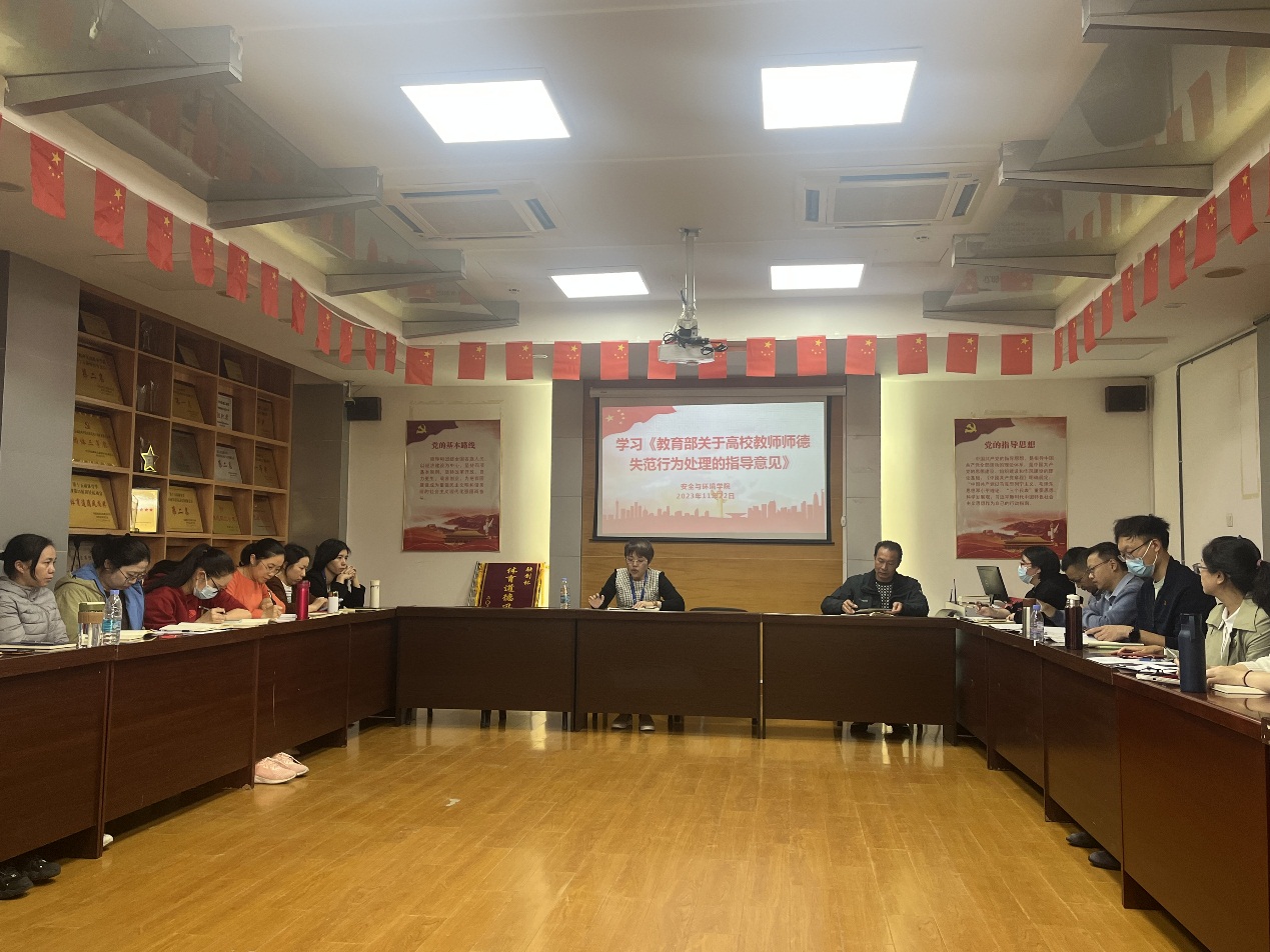 為進一步加強師德師風建設,強化教師職業(yè)道德、提高職業(yè)素養(yǎng),根據教師工作部要求,結合日常工作,2023年11月22日,安全與環(huán)境學院組織召開了師德師風專題學習會,全體教職工參加。會議由學院黨總支書記鄭雪琴主持。