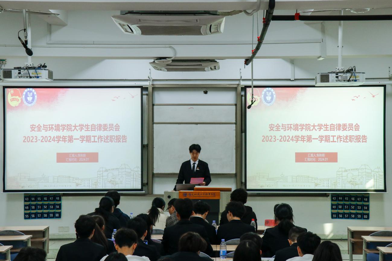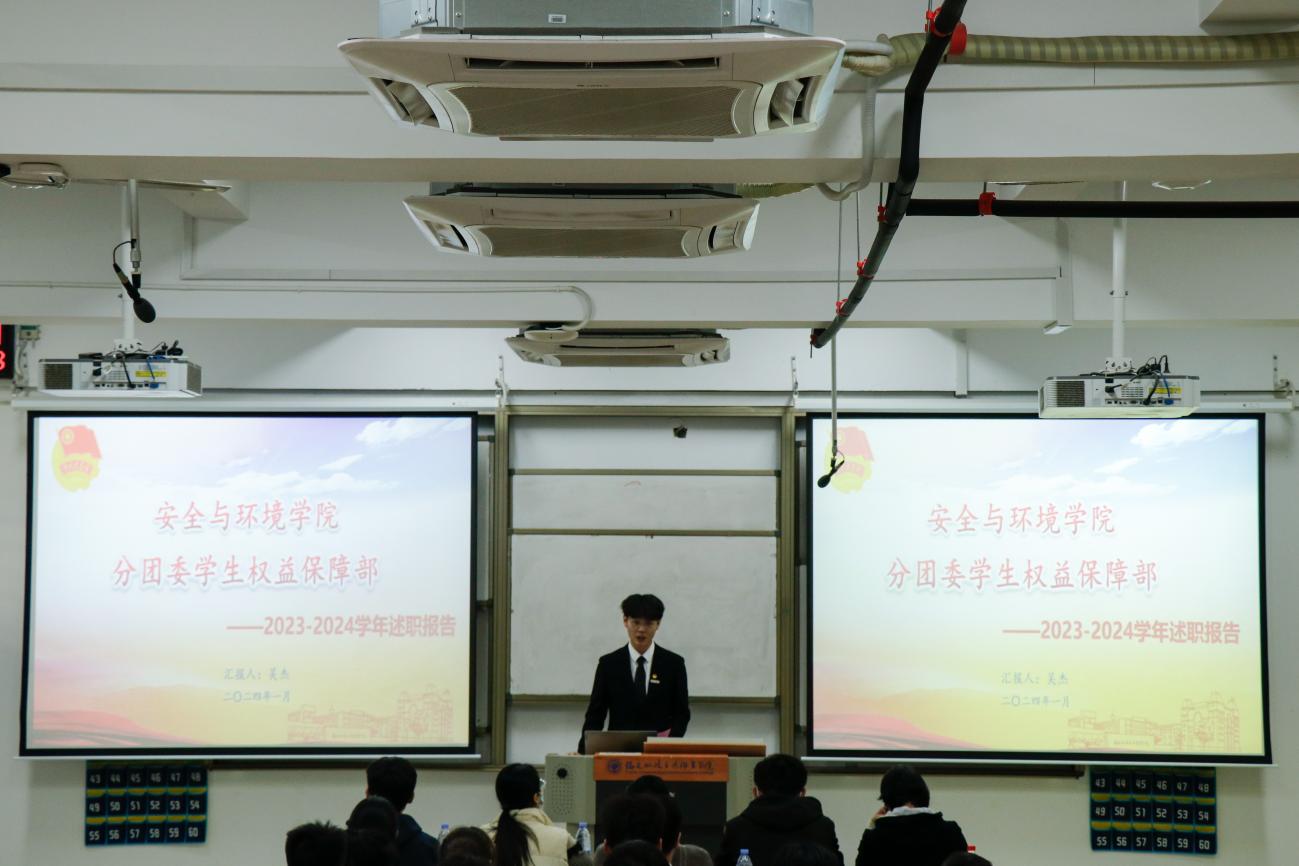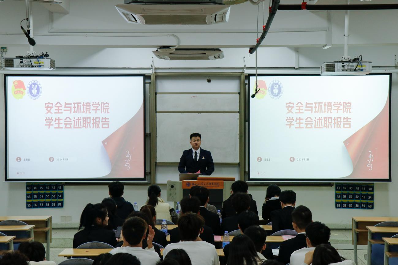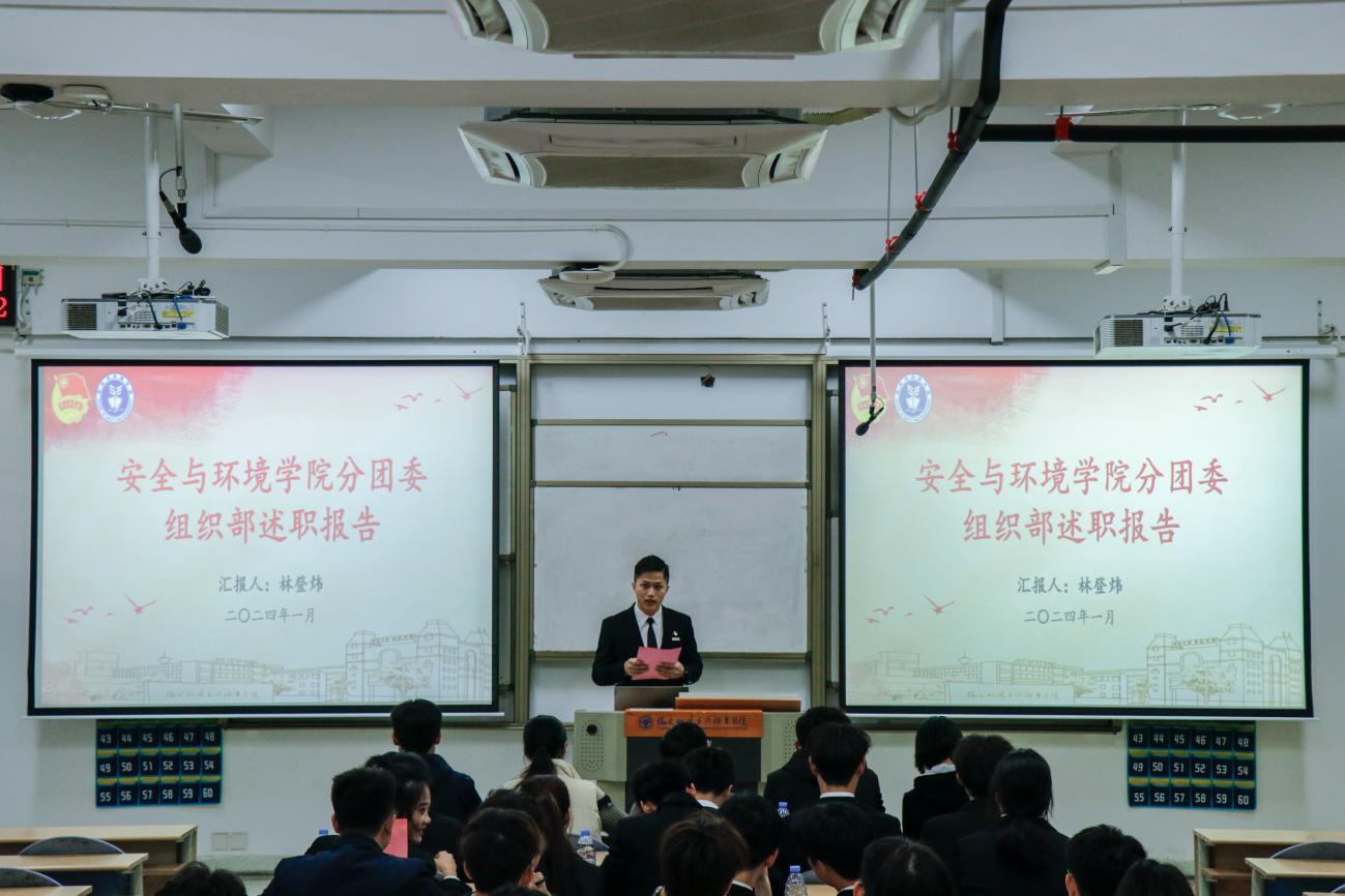 為深入學習貫徹習近平總書記關(guān)于青年工作的重要思想,進一步推動學生組織建設(shè),提高學生干部綜合素質(zhì),總結(jié)本學年工作實效,規(guī)劃下一年度工作,2024年1月2日安全與環(huán)境學院在創(chuàng)新樓201教室組織召開團委學生干部述職大會。安全與環(huán)境學院團委書記彭志允、團委組織委員張曉珊、團委宣傳委員李花、輔導(dǎo)員牟鵬飛、輔導(dǎo)員何瀚深蒞臨本次會議。