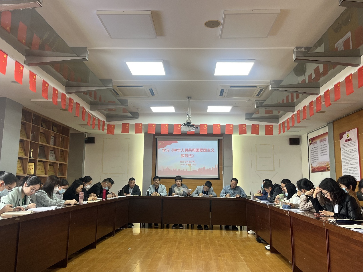 會(huì)議首先學(xué)習(xí)了《中華人民共和國愛國主義教育法》,各位教師就“如何在教育教學(xué)中踐行愛國主義教育法”這一問題展開討論。第一黨支部何瀚深老師說廣泛組織開展實(shí)踐活動(dòng),把愛國主義內(nèi)容融入各類教育活動(dòng)之中,組織開展豐富多彩的校園文化活動(dòng),豐富拓展愛國主義教育校外實(shí)踐領(lǐng)域,在廣大青少年中開展深入、持久、生動(dòng)的愛國主義教育,引導(dǎo)學(xué)生樹立國家意識(shí)、增進(jìn)愛國情感,把愛國情、強(qiáng)國志、報(bào)國行自覺融入實(shí)現(xiàn)中國夢(mèng)的奮斗之中。大家紛紛表示,將把對(duì)愛國的崇敬轉(zhuǎn)化為前進(jìn)的動(dòng)力,踏實(shí)努力、爭(zhēng)做人師、為黨育人、為國育才。