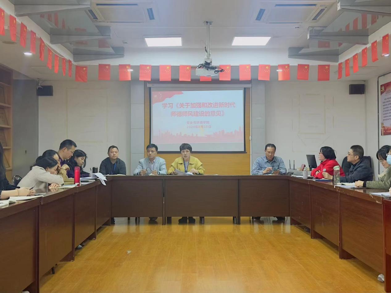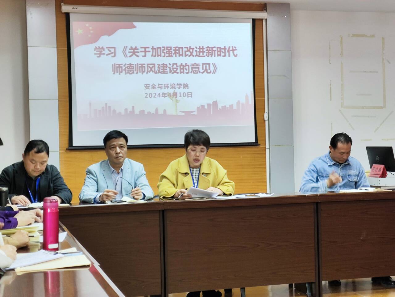 為進(jìn)一步提升教職工的師德修養(yǎng),規(guī)范教育教學(xué)行為,營(yíng)造風(fēng)清氣正的教育環(huán)境, 4月10日安全與環(huán)境學(xué)院組織全體教職工學(xué)習(xí)《關(guān)于加強(qiáng)和改進(jìn)新時(shí)代師德師風(fēng)建設(shè)的意見(jiàn)》。