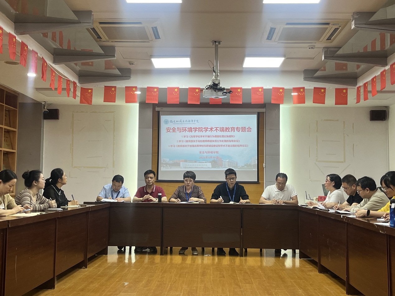 為深入貫徹落實(shí)黨的二十大精神,進(jìn)一步加強(qiáng)高等學(xué)??蒲姓\信建設(shè)、強(qiáng)化學(xué)術(shù)不端問題治理,構(gòu)建健康的學(xué)術(shù)生態(tài),培育創(chuàng)新文化,涵養(yǎng)優(yōu)良學(xué)風(fēng),加快構(gòu)建中國自主知識(shí)體系,更好服務(wù)高水平科技自立自強(qiáng),增強(qiáng)全院教師科研誠信意識(shí),加強(qiáng)學(xué)術(shù)道德教育,營造風(fēng)清正氣的科研環(huán)境和學(xué)術(shù)氛圍,按照《教育部關(guān)于加強(qiáng)高等學(xué)??蒲姓\信建設(shè)和學(xué)術(shù)不端治理的指導(dǎo)意見》的通知,2024年4月30日下午,安全與環(huán)境學(xué)院學(xué)術(shù)不端教育專題會(huì)在創(chuàng)新樓909會(huì)議室召開。會(huì)議由鄭雪琴書記主持,學(xué)院全體教師參加會(huì)議。