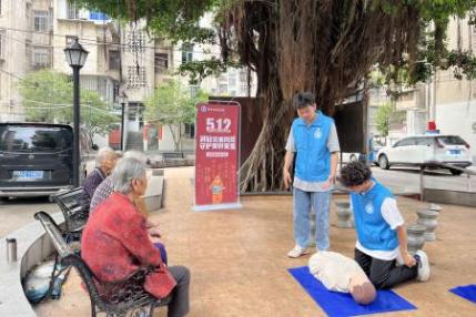 在防災(zāi)減災(zāi)活動現(xiàn)場,志愿者們向居民們講解遇到事故災(zāi)難和自然災(zāi)害時應(yīng)如何開展自救、互救,指導(dǎo)大家學(xué)習(xí)掌握自救技能,提高防災(zāi)減災(zāi)知識的知曉率。