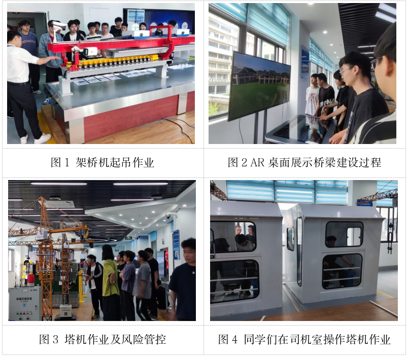 在智慧安全工地實訓(xùn)室,同學(xué)們認識塔機、架橋機等大型施工機械的主要結(jié)構(gòu),了解橋梁建設(shè)過程,現(xiàn)場操作塔機,親身經(jīng)歷和感受大型機械的作業(yè)過程,辨識作業(yè)過程中的風(fēng)險,了解作業(yè)安全管控要點。