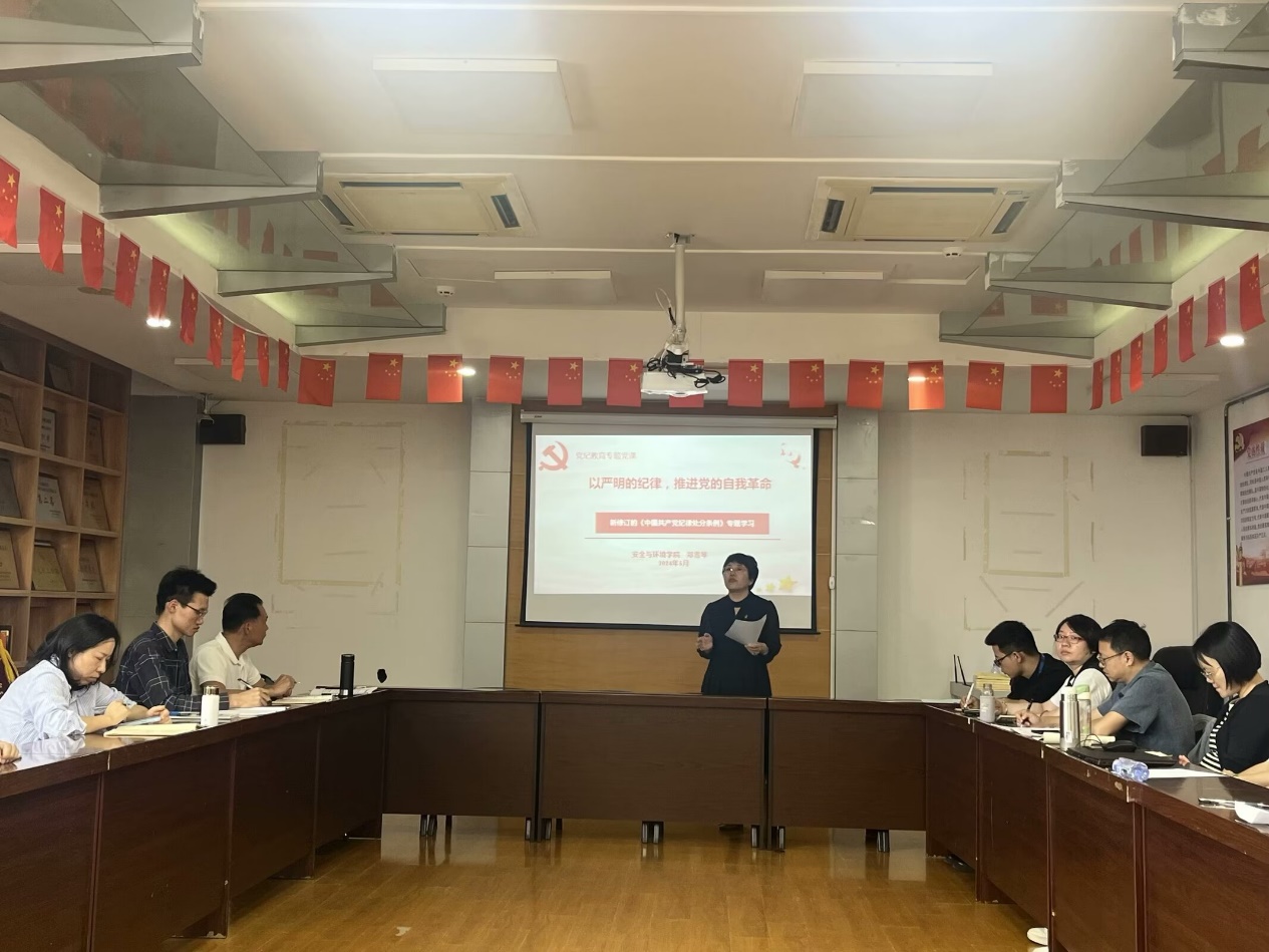 5月29日下午,我院黨總支書記鄭雪琴同志以《以嚴明的紀律,推進黨的自我革命》為題講授黨紀學習教育專題黨課,學院全體黨員教師參加。