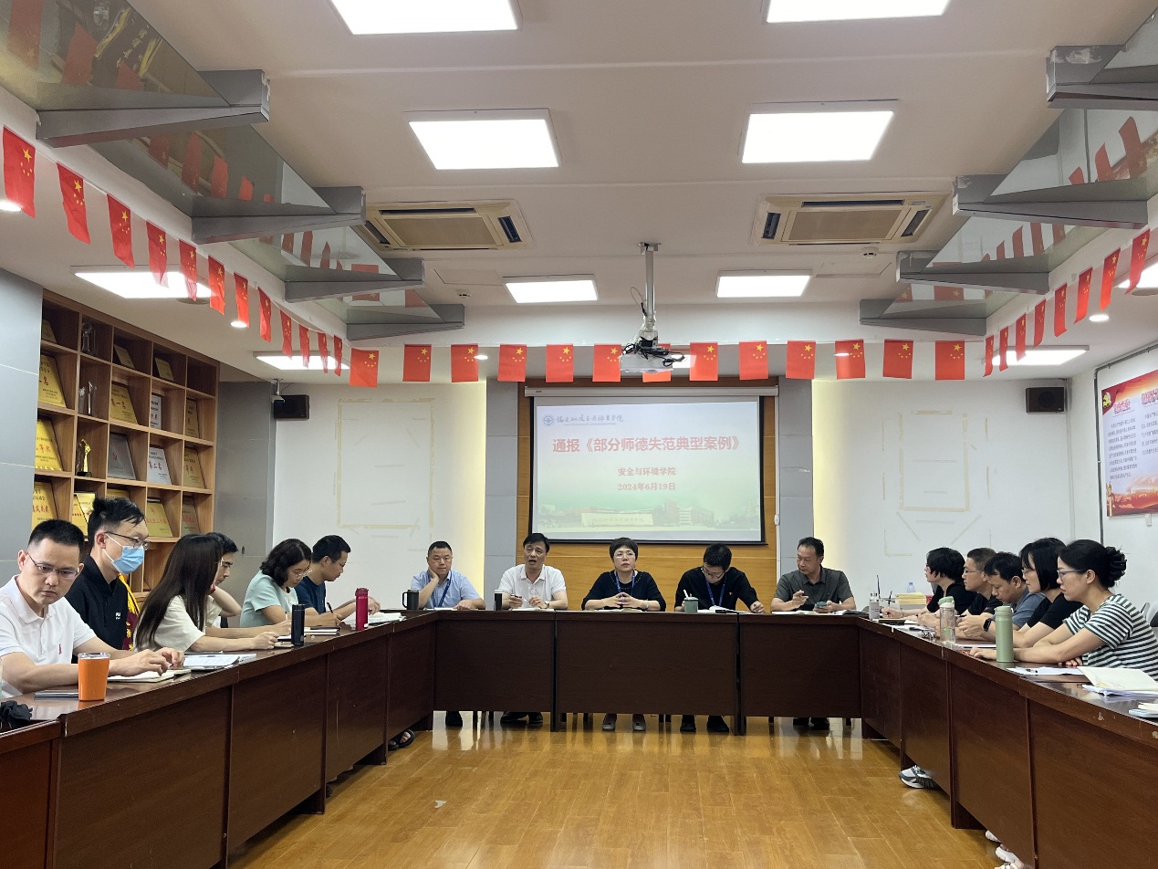 為深入貫徹落實(shí)黨的二十大精神,加強(qiáng)師德師風(fēng)建設(shè),嚴(yán)明底線意識(shí),規(guī)范教師職業(yè)行為,營(yíng)造風(fēng)清氣正的育人環(huán)境,6月19日下午,安全與環(huán)境學(xué)院召開(kāi)黨紀(jì)學(xué)習(xí)教育暨師德師風(fēng)專(zhuān)題警示教育會(huì)。會(huì)議由黨總支書(shū)記鄭雪琴同志主持,學(xué)院全體教師參加。