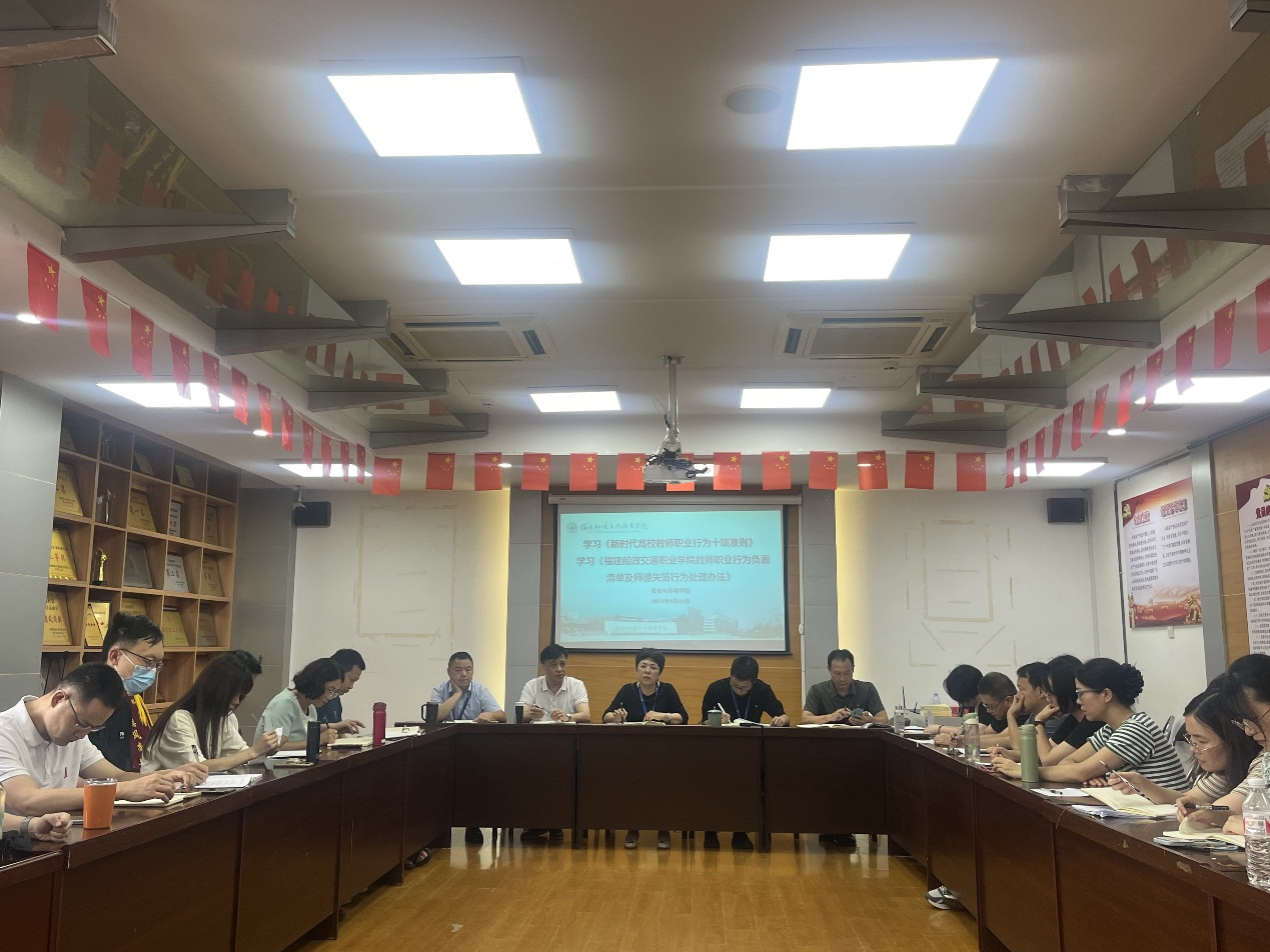 接著,范自盛副院長(zhǎng)解讀了《福建船政交通職業(yè)學(xué)院教師職業(yè)行為負(fù)面清單及師德失范行為處理辦法》,幫助全體教職工深入了解文件條款。全體教職員工要有底線思維,要自覺(jué)加強(qiáng)師德修養(yǎng),嚴(yán)格遵守師德規(guī)范,嚴(yán)以律己,為人師表,把教書(shū)育人和自我修養(yǎng)結(jié)合起來(lái),堅(jiān)持以德立身、以德立學(xué)、以德施教、以德育德。