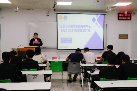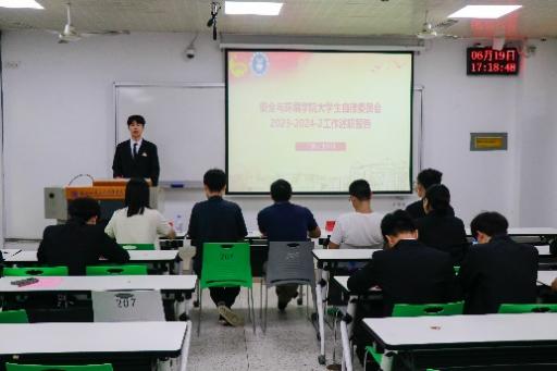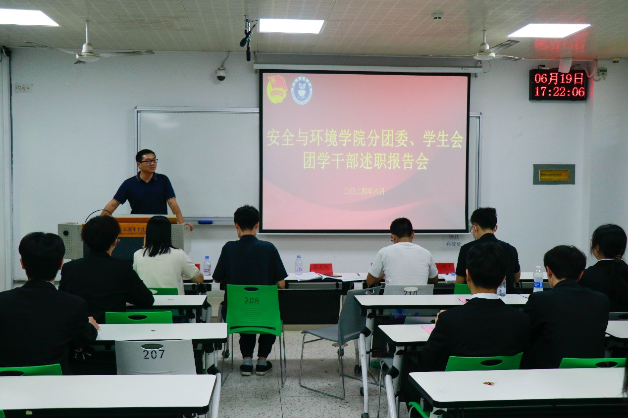 為進(jìn)一步落實(shí)共《關(guān)于推動(dòng)高校學(xué)生會(huì)深化改革的若干意見(jiàn)》、《深化學(xué)校共青團(tuán)改革的若干措施》等文件精神,推動(dòng)學(xué)院學(xué)生干部隊(duì)伍的建設(shè),6月19日下午,2023-2024學(xué)年安全與環(huán)境學(xué)院學(xué)生部門述職大會(huì)于創(chuàng)新樓208教室召開(kāi)。學(xué)院團(tuán)委書(shū)記彭志允、團(tuán)委副書(shū)記徐林悅慰、團(tuán)委組織委員張曉珊、學(xué)院第一黨支部書(shū)記何瀚深、輔導(dǎo)員牟鵬飛蒞臨參加本次述職大會(huì)。