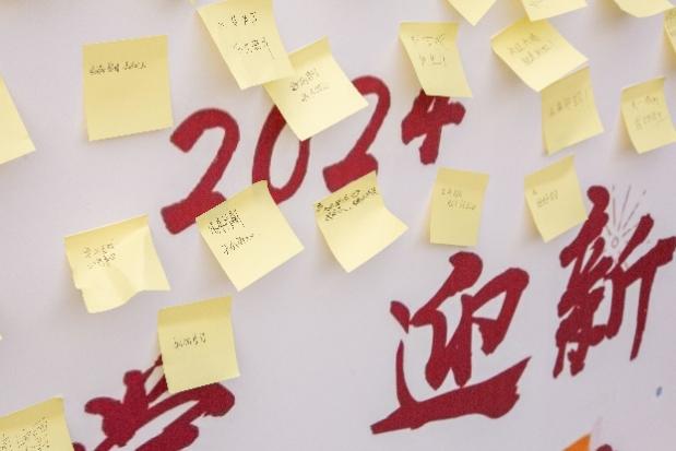 萌新們在報(bào)到區(qū)旁的“慶開(kāi)學(xué),迎新生”主題展板,留言記錄下自己此時(shí)此刻的心情,或是對(duì)新生活的向往與期待。