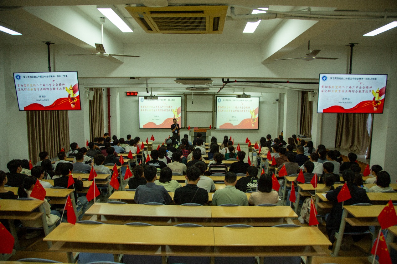 為進(jìn)一步深學(xué)細(xì)悟篤行黨的二十屆三中全會精神,深入學(xué)習(xí)宣傳貫徹全國教育大會精神,準(zhǔn)確把握職業(yè)教育專業(yè)群綜合教育改革新任務(wù)新要求,2024年10月30日下午,安全與環(huán)境學(xué)院院長陳明仙教授做“貫徹落實(shí)黨的二十屆三中全會精神 深化職業(yè)教育專業(yè)群綜合教育改革”的專題報告,學(xué)院全體教師及部分學(xué)生代表參加宣講會。