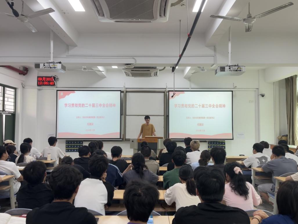 為了深入學(xué)習(xí)貫徹黨的二十屆三中全會(huì)精神,進(jìn)一步提高黨員和學(xué)生入黨積極分子的政治素養(yǎng)和理論水平,2024年9月18日,安全與環(huán)境學(xué)院第一黨支部在創(chuàng)新樓201教室,舉辦學(xué)習(xí)貫徹黨的二十屆三中全會(huì)精神主題宣講活動(dòng)。宣講由黨支部書(shū)記何瀚深主講,第一黨支部黨員和學(xué)生入黨積極分子參加宣講。
