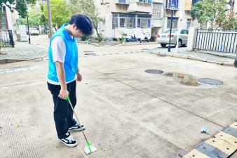 現(xiàn)場,志愿者們進行美化社區(qū)活動。志愿者撿拾起道路上的落葉和垃圾,使社區(qū)環(huán)境更加整潔,讓居民們居住得更加舒心。
