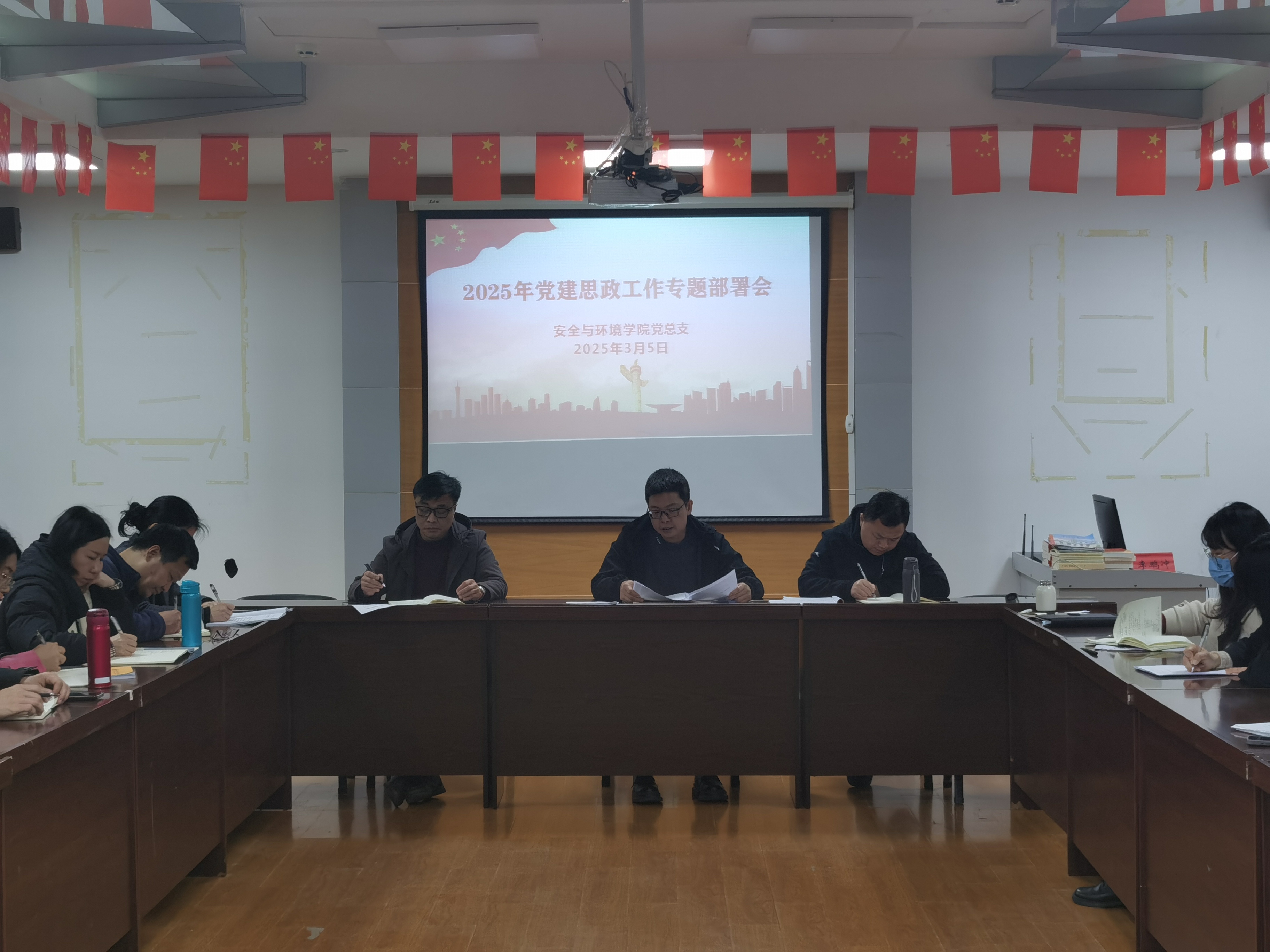 2025年3月5日,安全與環(huán)境學(xué)院召開2025年黨建思政工作專題部署會,會議由學(xué)院院長陳明仙同志主持,學(xué)院黨政領(lǐng)導(dǎo)、總支委員和各支部委員參加會議。