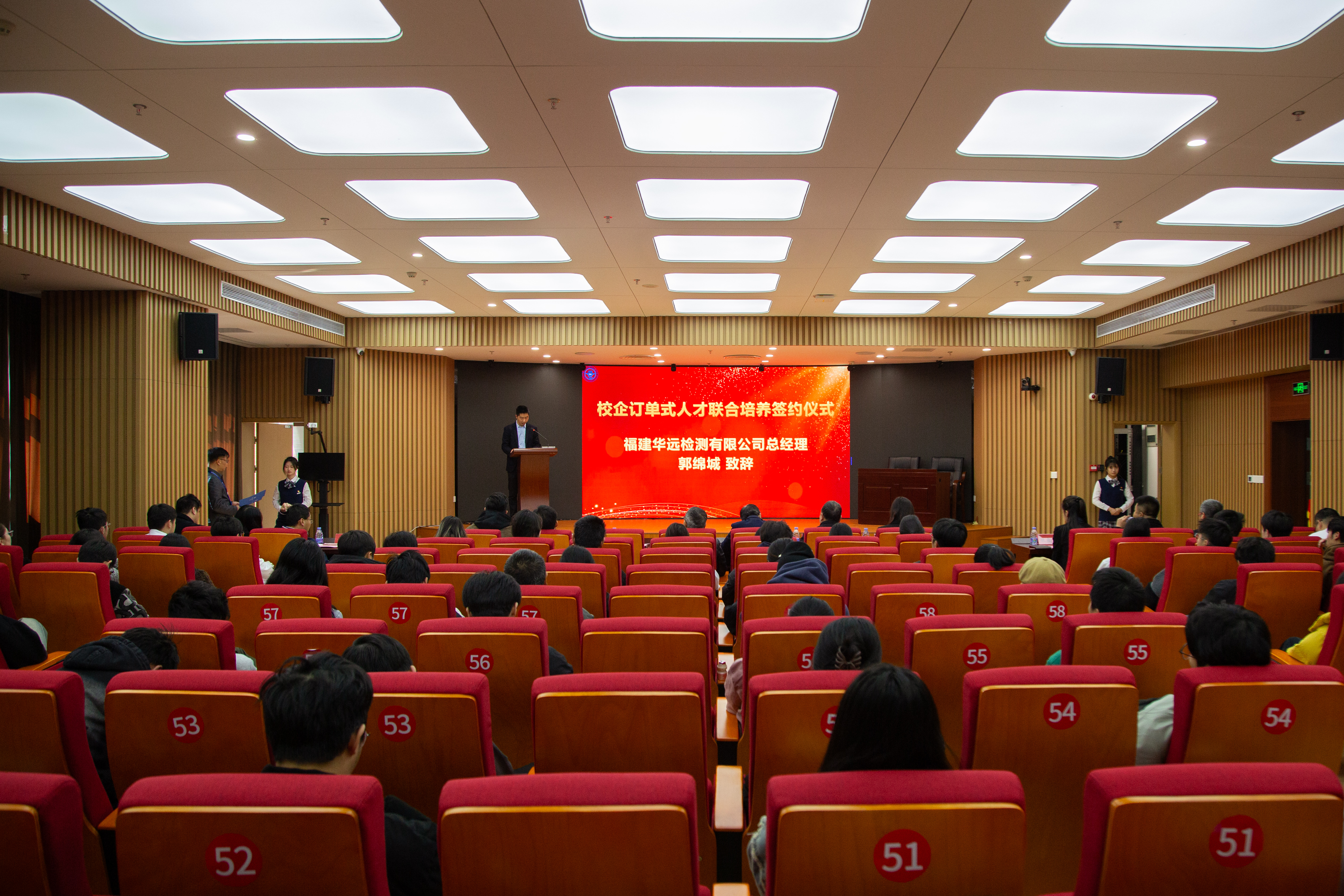 福建華遠檢測有限公司總經(jīng)理郭綿城代表簽約企業(yè)致辭,他指出訂單班將以行業(yè)需求為導向,依托企業(yè)技術(shù)資源與學院教學優(yōu)勢,通過“工學交替+項目實戰(zhàn)”的模式培養(yǎng)復(fù)合型環(huán)境監(jiān)測人才,為環(huán)保產(chǎn)業(yè)高質(zhì)量發(fā)展注入新生力量。
