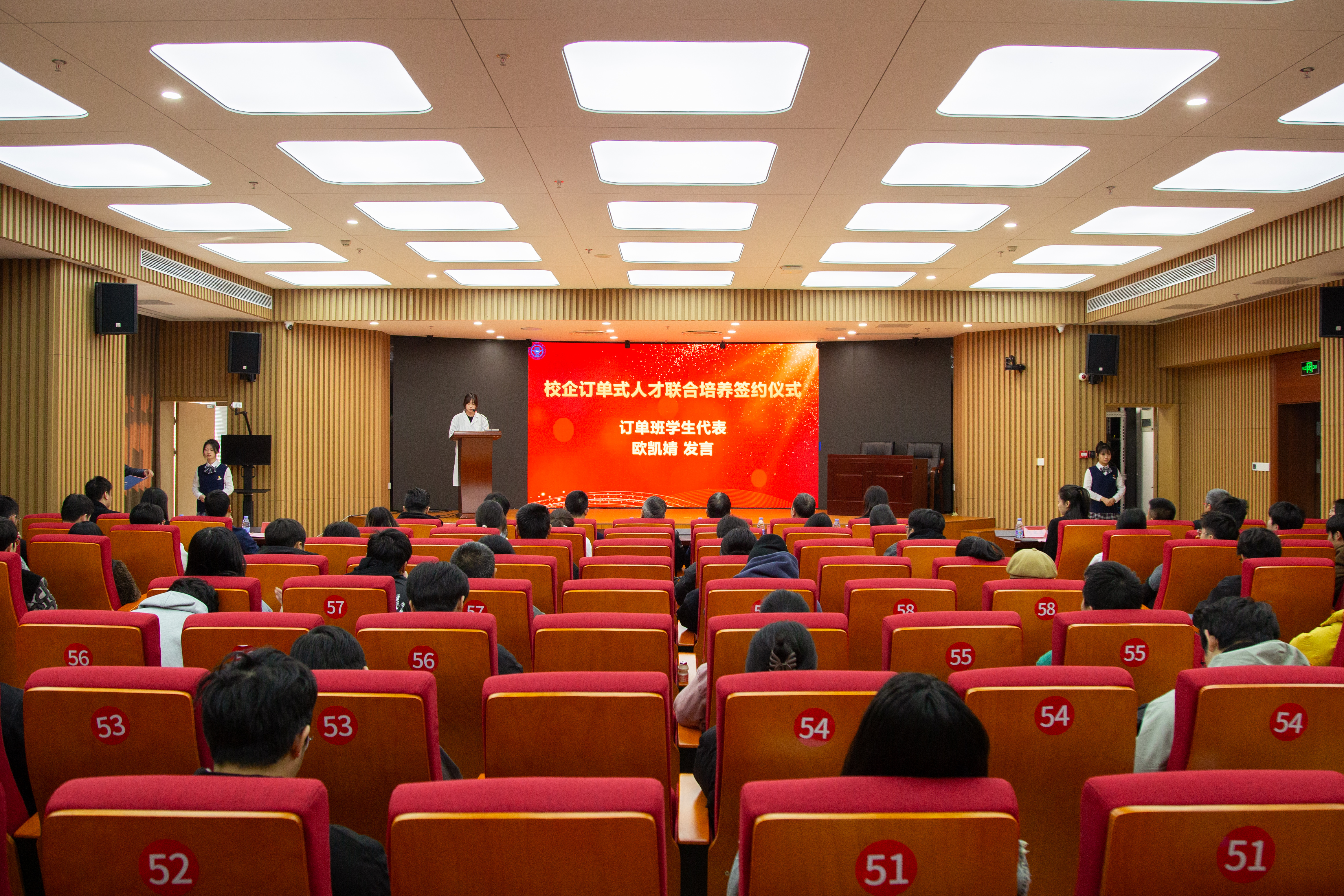 訂單班學生歐凱婧發(fā)言,她表示將珍惜訂單班學習的機會,以行業(yè)需求為導向,扎實學習監(jiān)測技術(shù),踐行環(huán)保責任,以專業(yè)能力服務(wù)生態(tài)治理,為生態(tài)文明建設(shè)貢獻青春力量。