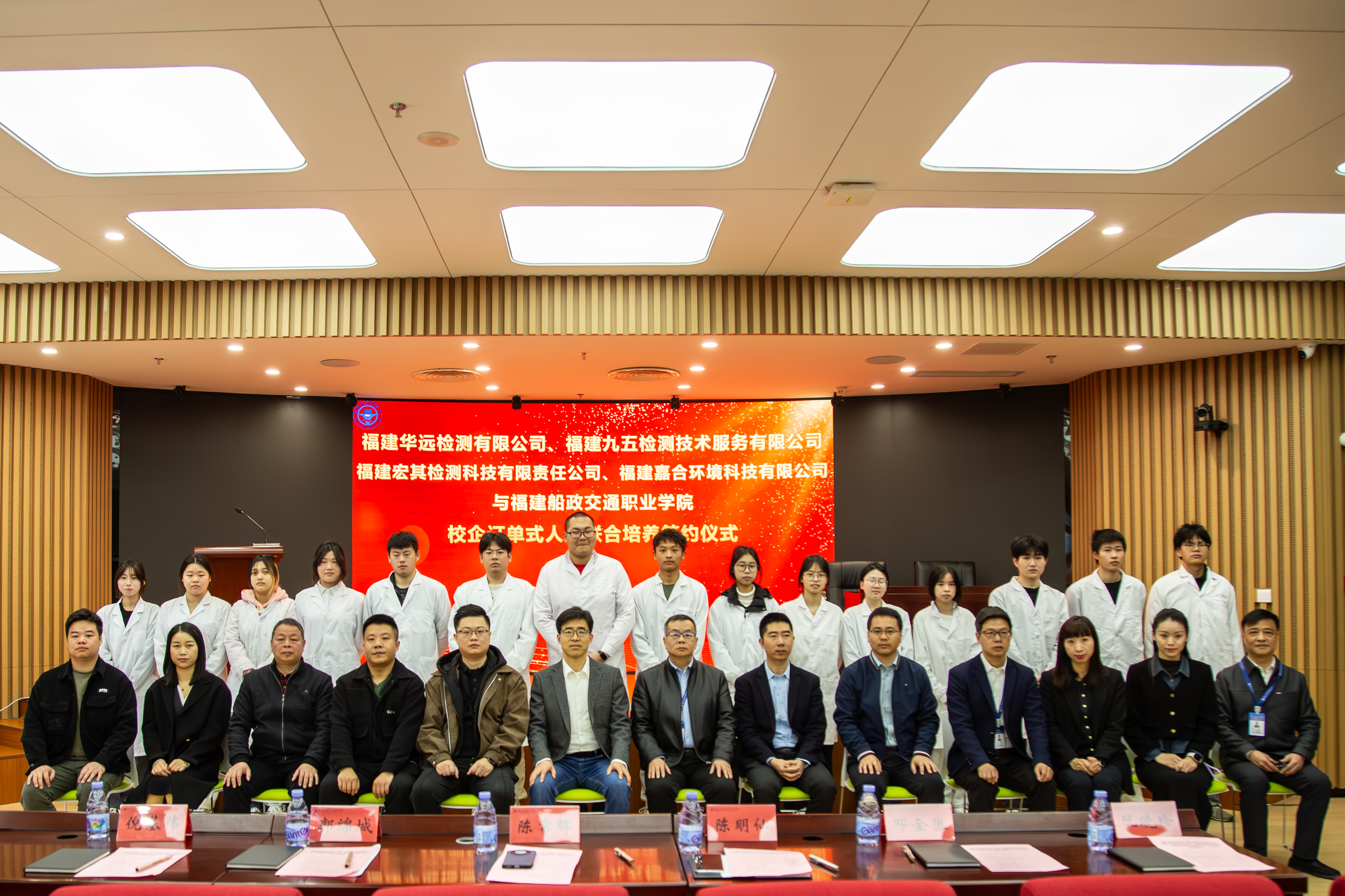 3月18日,學院與福建華遠檢測有限公司、福建九五檢測技術(shù)服務(wù)有限公司、福建宏其檢測科技有限責任公司、福建嘉合環(huán)境科技有限公司等4家環(huán)境檢測與治理龍頭企業(yè)舉行校企訂單式人才聯(lián)合培養(yǎng)簽約儀式,學院副院長陳常暉、教務(wù)處副處長鄧金狼、安環(huán)學院院長陳明仙、安環(huán)學院副院長陳榕、福建華遠檢測有限公司總經(jīng)理郭綿城、福建九五檢測技術(shù)服務(wù)有限公司總經(jīng)理倪基偉、福建宏其檢測科技有限責任公司總經(jīng)理馮騫、福建嘉合環(huán)境科技有限公司總經(jīng)理宋洪忱等企業(yè)領(lǐng)導出席儀式,訂單班簽約學生及安全與環(huán)境學院師生代表參加了活動。