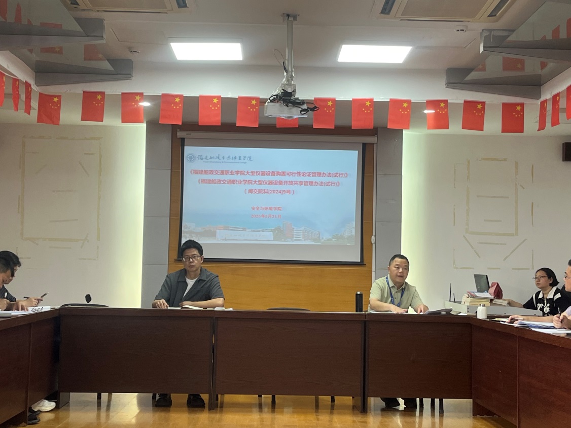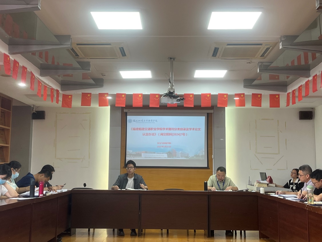 2025年5月21日下午,安全與環(huán)境學(xué)院在創(chuàng)新樓909會議室召開全院教師大會,專題學(xué)習(xí)學(xué)??萍继幾钚掳l(fā)布的五項科研管理制度文件,包括《福建船政交通職業(yè)學(xué)院科研計劃項目經(jīng)費(fèi)管理辦法》、《福建船政交通職業(yè)學(xué)院學(xué)術(shù)期刊分類目錄及學(xué)術(shù)論文認(rèn)定辦法》、《福建船政交通職業(yè)學(xué)院大型儀器設(shè)備購置可行性論證管理辦法(試行)福建船政交通職業(yè)學(xué)院大型儀器設(shè)備開放共享管理辦法(試行)》、《福建船政交通職業(yè)學(xué)院科研項目級別與項目負(fù)責(zé)人認(rèn)定辦法》和《福建船政交通職業(yè)學(xué)院科研項目經(jīng)費(fèi)使用“包干制”管理辦法(試行)》。會議由學(xué)院院長陳明仙主持,全體教師參加了會議。