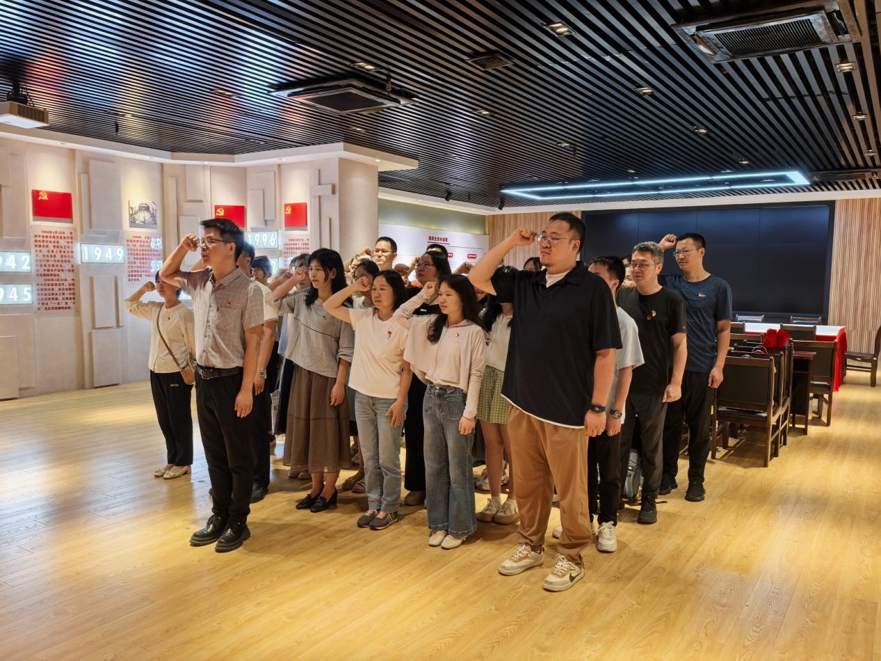 參觀結(jié)束后,在陳明仙院長(zhǎng)帶領(lǐng)下,黨員教師們面向黨旗,握拳過(guò)肩,高聲重溫入黨誓詞。無(wú)論是初誦還是重溫,都在宣誓中感受到沉甸甸的使命感、責(zé)任感與榮耀感。