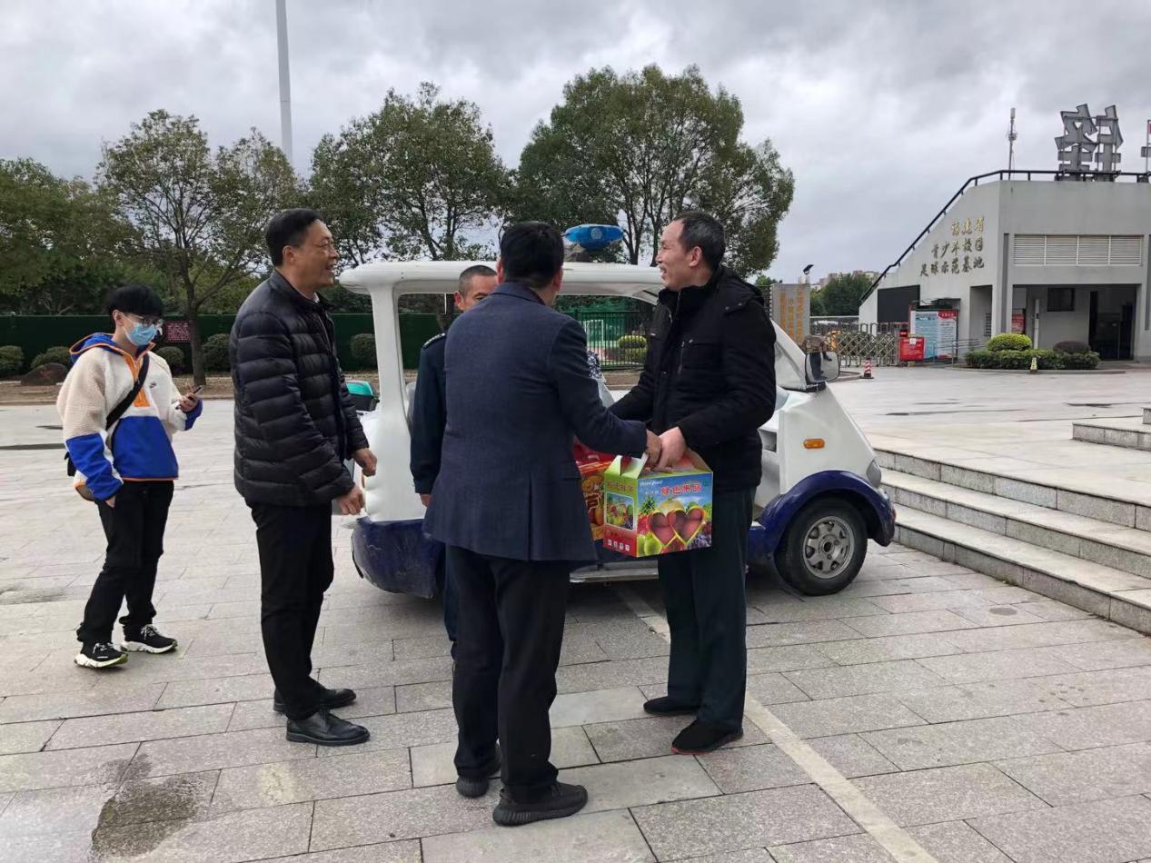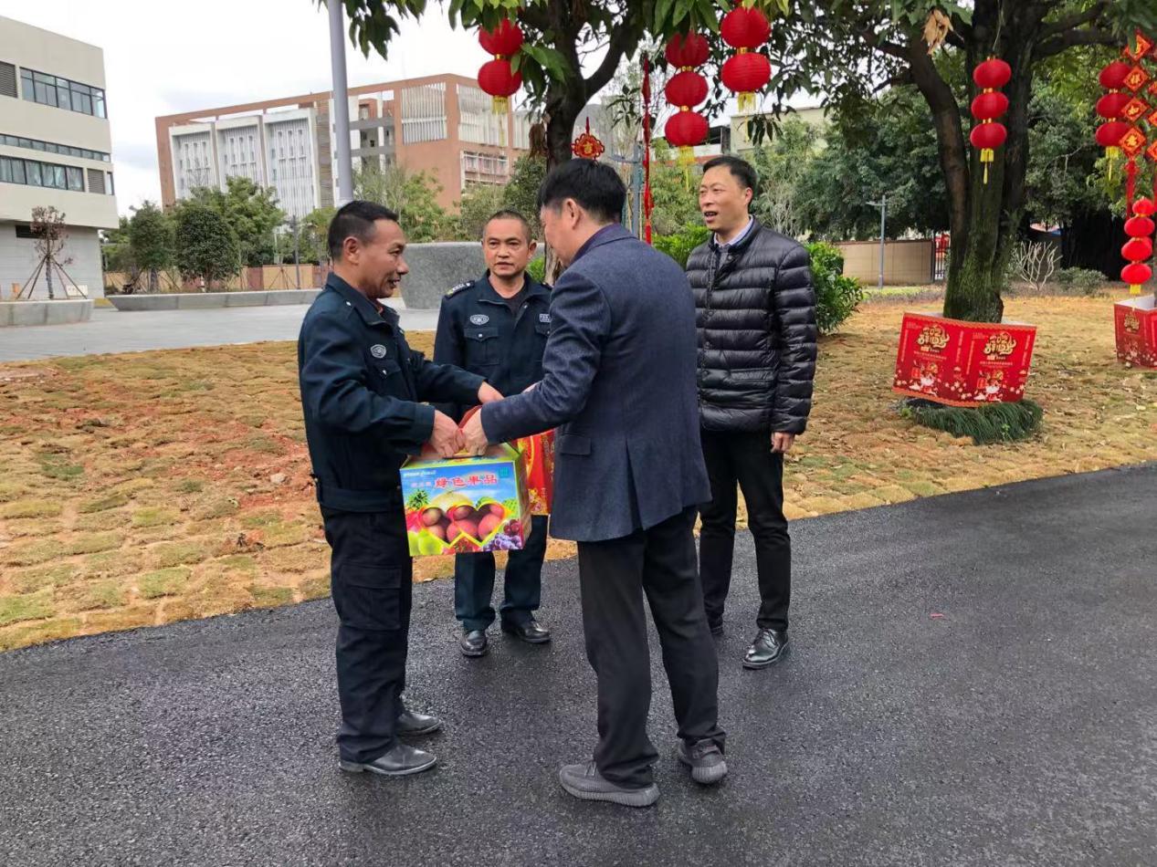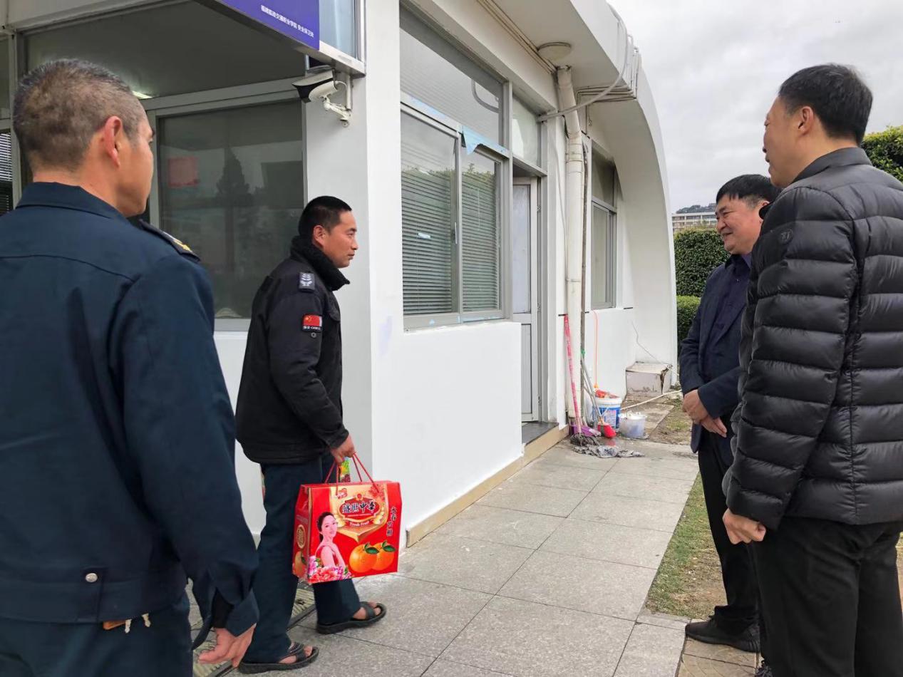 2020年2月11日上午,我校高汝武副院長在安全保衛(wèi)處處長潘忠的陪同下看望慰問春節(jié)期間仍堅守崗位的保安人員,向他們致以新春的祝福和節(jié)日的問候。高汝武副院長同保安隊員一一握手,詳細詢問了解他們的工作、生活情況,對春節(jié)期間為保障學(xué)校平安而放棄與家人團聚機會堅守在值勤崗位的保安隊員表示了衷心的感謝,并致以親切的慰問和節(jié)日的祝福。同時,他要求大家再接再厲,春節(jié)期間不要麻痹大意,尤其要加強校園的安全值守工作。