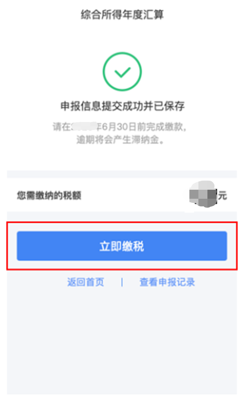 若您存在應補稅額但不符合免申報,可點擊【立即繳稅】。