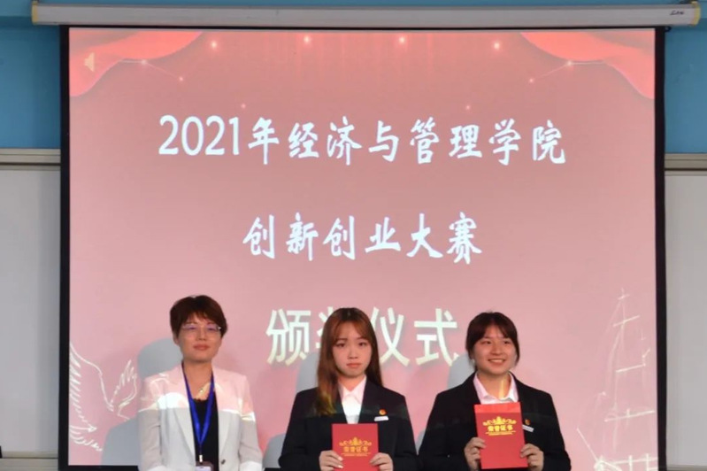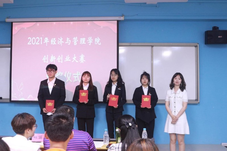 經(jīng)濟(jì)與管理學(xué)院黨總支副書記林麗萍、副院長吳吉明、團(tuán)委書記傅一丹對(duì)本次大賽的獲獎(jiǎng)隊(duì)伍進(jìn)行頒獎(jiǎng)。