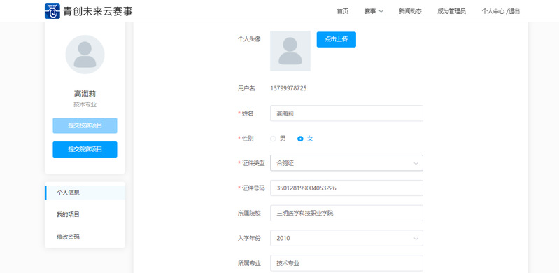 三步:登錄成功,進(jìn)入大賽平臺“個(gè)人資料”主頁。