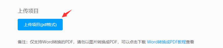 4)點(diǎn)擊“上傳項(xiàng)目(PDF格式)”,(備注:僅支持Word轉(zhuǎn)換的PDF,請勿以圖片轉(zhuǎn)換成PDF,可以點(diǎn)擊下載Word轉(zhuǎn)換成PDF教程查看),上傳項(xiàng)目。