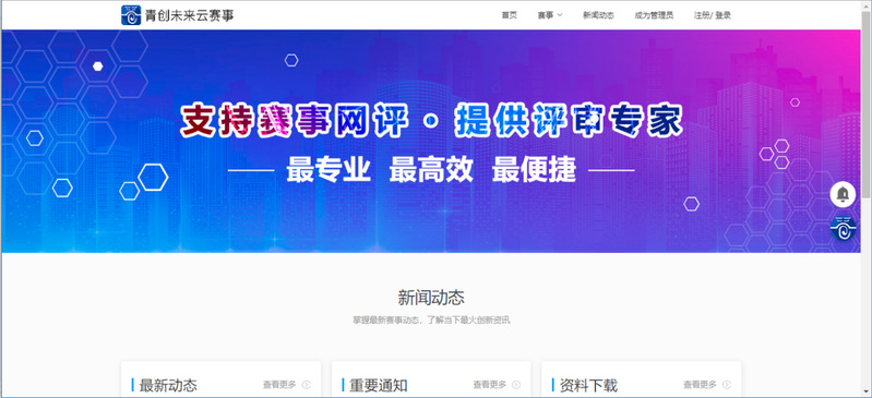 第一步:在學(xué)校三創(chuàng)教育綜合服務(wù)平臺上選擇“賽事管理”(https://fjcpc.91ready.com/#/)或輸入網(wǎng)址(https://fjcpc-match.91ready.com/#/),登錄大賽服務(wù)平臺。