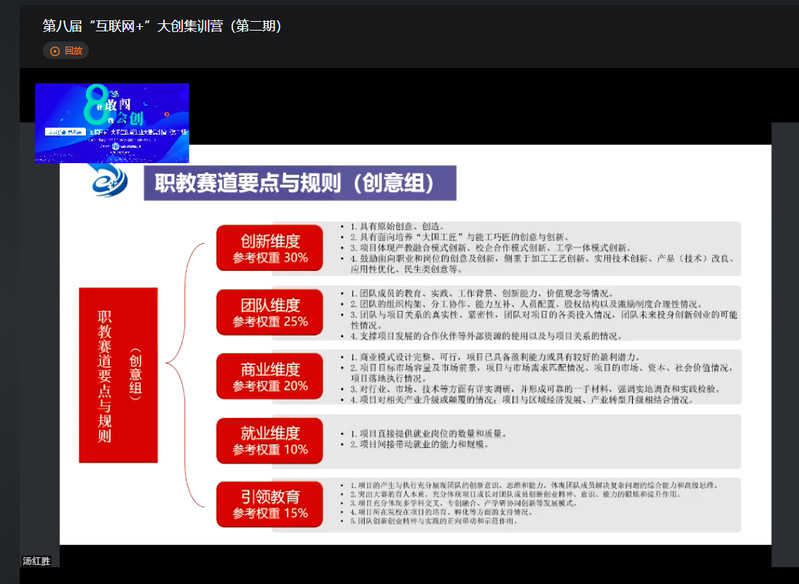 為確保培訓(xùn)的正常進(jìn)行,創(chuàng)新創(chuàng)業(yè)學(xué)院主動(dòng)聯(lián)系各職業(yè)院校了解需求,尋找合適的線上培訓(xùn)平臺(tái),組織報(bào)名,對接專家,安排課程,盡心盡力做好集訓(xùn)準(zhǔn)備工作。在大家共同努力下,三天四場的線上培訓(xùn)順利完成。每場講座全省職業(yè)院校和應(yīng)用型本科院校師生踴躍參加,培訓(xùn)組織有序,線上授課順暢,討論互動(dòng)環(huán)節(jié)氣氛熱烈,參訓(xùn)的師生表示:本次集訓(xùn)營讓大家對“互聯(lián)網(wǎng)+”大學(xué)生創(chuàng)新創(chuàng)業(yè)大賽的政策有了更加直觀體會(huì)和準(zhǔn)確認(rèn)知,明確了大賽項(xiàng)目培育的重點(diǎn)和核心邏輯,提升了項(xiàng)目團(tuán)隊(duì)的參賽信心,為下一階段校賽和省賽打下良好基礎(chǔ)。培訓(xùn)結(jié)束,我們還安排回放和授課的課件分享,為奮戰(zhàn)在抗疫一線的泉州和廈門職業(yè)院校師生提供再學(xué)習(xí)機(jī)會(huì)。