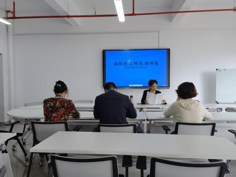 2022年4月15日,創(chuàng)新創(chuàng)業(yè)學(xué)院組織開展以“強(qiáng)師德正師風(fēng)鑄師魂”為主題的教育活動(dòng),學(xué)習(xí)了《中共中央國(guó)務(wù)院關(guān)于全面深化新時(shí)代老師隊(duì)伍建設(shè)改革的意見》、《新時(shí)代高校教師職業(yè)行為十項(xiàng)準(zhǔn)則》、《教育部關(guān)于高校教師師德失范行為處理的指導(dǎo)意見》、《中共教育部黨組關(guān)于完善高校教師思想政治和師德師風(fēng)建設(shè)工作體制機(jī)制的指導(dǎo)意見》以及《福建船政交通職業(yè)學(xué)院教師職業(yè)行為負(fù)面清單及師德失范行為處理辦法》等上級(jí)有關(guān)師風(fēng)師德文件精神。