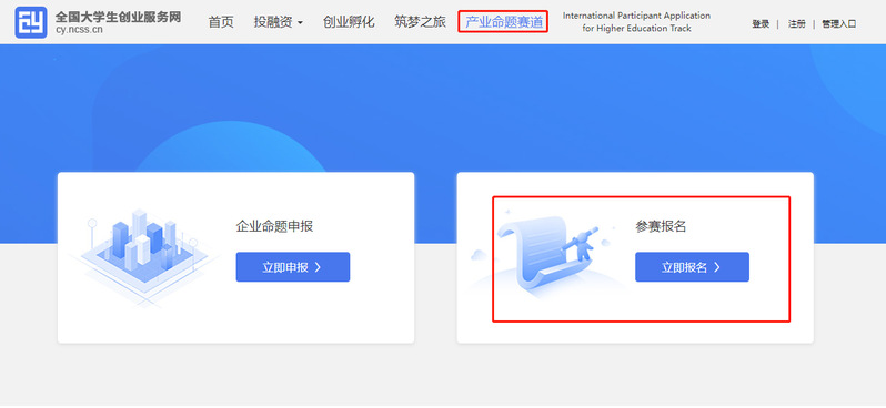 第三步:訪問【全國大學生創(chuàng)業(yè)服務網(wǎng)】(網(wǎng)址:https://cy.ncss.cn/)—產(chǎn)業(yè)命題賽道—參賽報名—產(chǎn)業(yè)命題賽道版塊,按照命題企業(yè)名稱及命題名稱搜索命題,瀏覽命題內(nèi)容及答題要求。