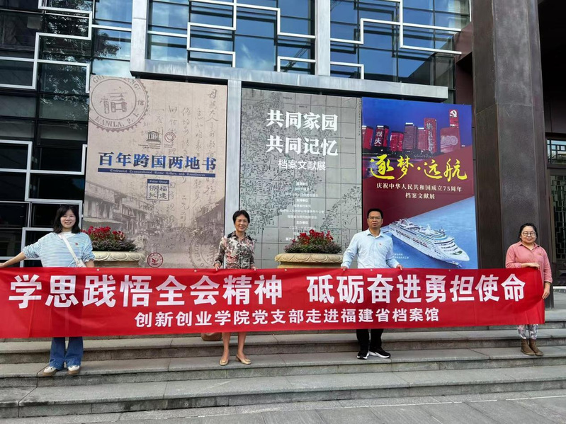 為深入學(xué)習(xí)貫徹黨的二十屆三中全會精神,在新征程上不斷汲取中國共產(chǎn)黨人榜樣的精神力量,堅(jiān)定理想信念砥礪前行,11月5日,創(chuàng)新創(chuàng)業(yè)學(xué)院黨支部組織全體黨員赴福建省檔案館開展“學(xué)思踐悟全會精神,砥礪奮進(jìn)勇?lián)姑?/span>”主題黨日活動。