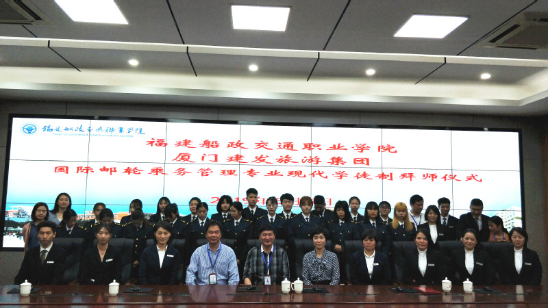 5月5日下午,航海技術(shù)系在北區(qū)1號(hào)樓6樓會(huì)議室舉行國(guó)際郵輪乘務(wù)管理專業(yè)現(xiàn)代學(xué)徒制拜師儀式?!耙话輲煾登谠耘?,二拜師傅傳技藝,三拜師傅承師恩。”本次拜師儀式是現(xiàn)代學(xué)徒制試點(diǎn)的重要環(huán)節(jié),通過(guò)拜師儀式明確師徒關(guān)系、雙方職責(zé),為今后開(kāi)展人才精準(zhǔn)培養(yǎng)打好基礎(chǔ)。教學(xué)副院長(zhǎng)高汝武、廈門(mén)建發(fā)旅游集團(tuán)人事總監(jiān)李桃、航海技術(shù)系主任、郵輪乘務(wù)管理專業(yè)教師及2018級(jí)國(guó)際郵輪乘務(wù)管理專業(yè)21名學(xué)生參加了拜師儀式。